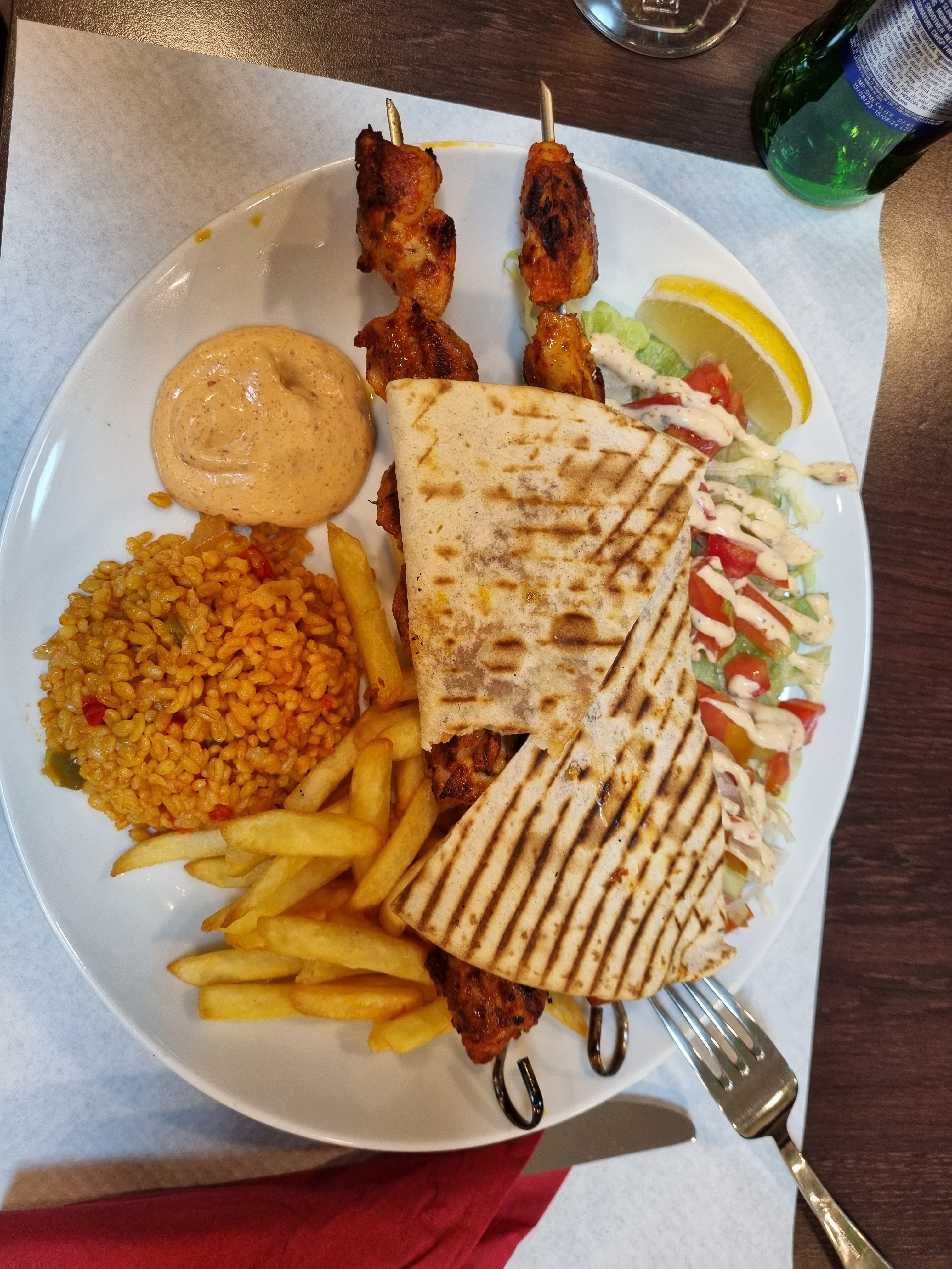 Très bon moment, bon kebab (ce qui devient rare), service extra avec un thé et un baklawa offerts par le gérant à la fin du repas.