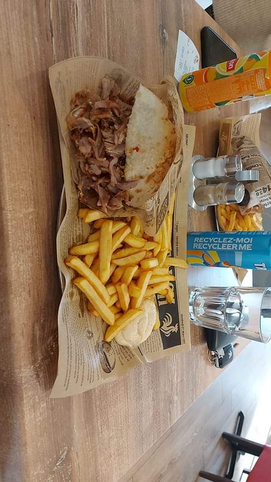 Excellent! Je n'ai rien à dire. Le kebab est CHARGÉ, vous en avez pour le prix payé. La viande est excellente, croustillante et bien grillée. Les frites étaient chaudes et très bonnes. Mention spéciale pour la sauce Gitane qui est exquise. Le local est très propre, super sympa et les tables bien espacées. Nous y retournerons avec grand plaisir.