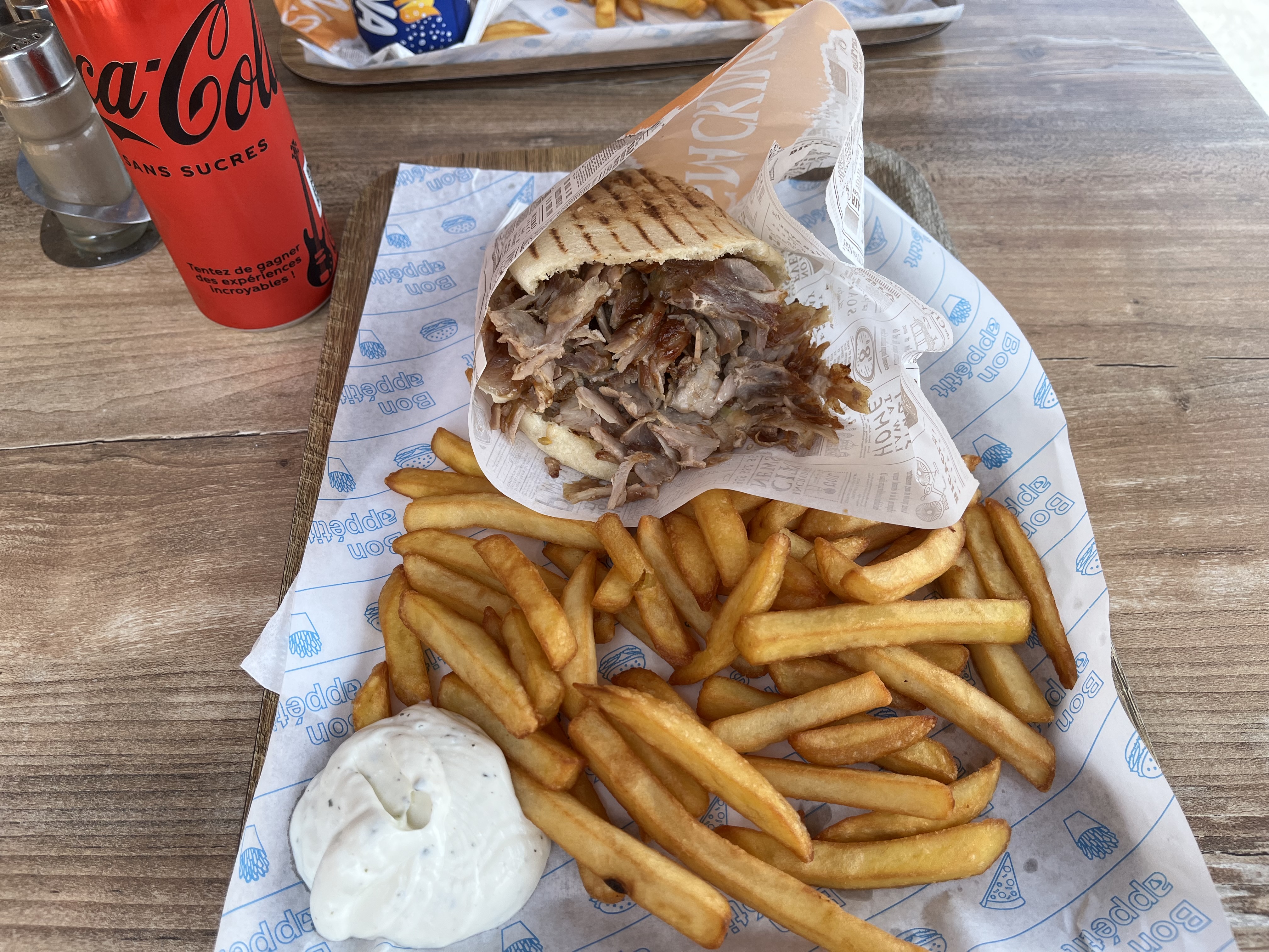 On s’est régalé, la viande grec est excellente et que dire des sauces maisons (blanche et gitane) qui sont fraîche et incroyable en goût. Servit en 5 minutes avec le sourire. Merci beaucoup beaucoup !