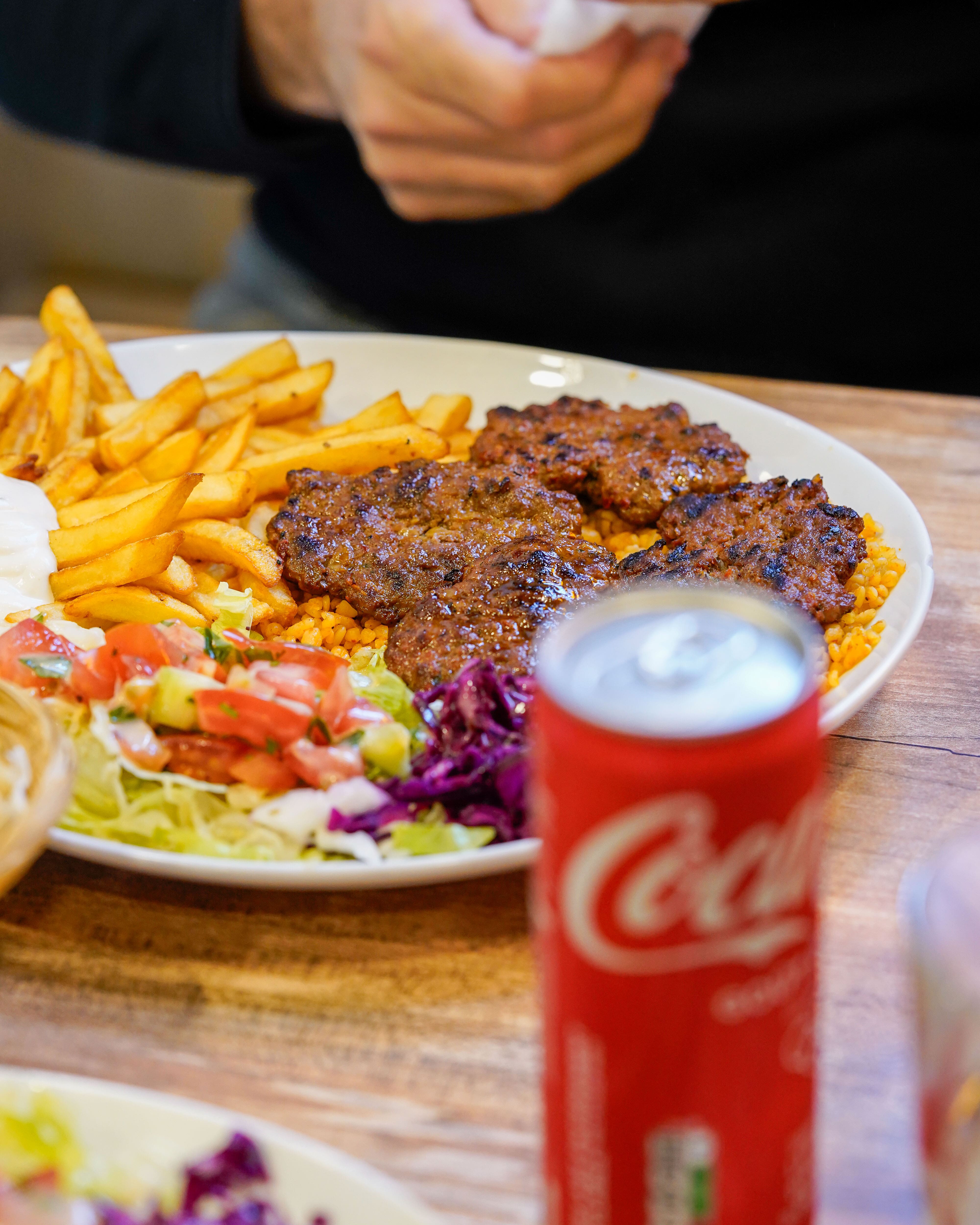 Première expérience très bonne chez Mein Kebab. Les viandes sont très bonnes, ainsi que les frites (en grande quantité malgré la commande à emporter) et la sauce blanche (maison) est très très bonne. Nous nous attendions à une brochette Adana un peu plus grande mais elle était très bonne! Nous reviendrons avec plaisir.