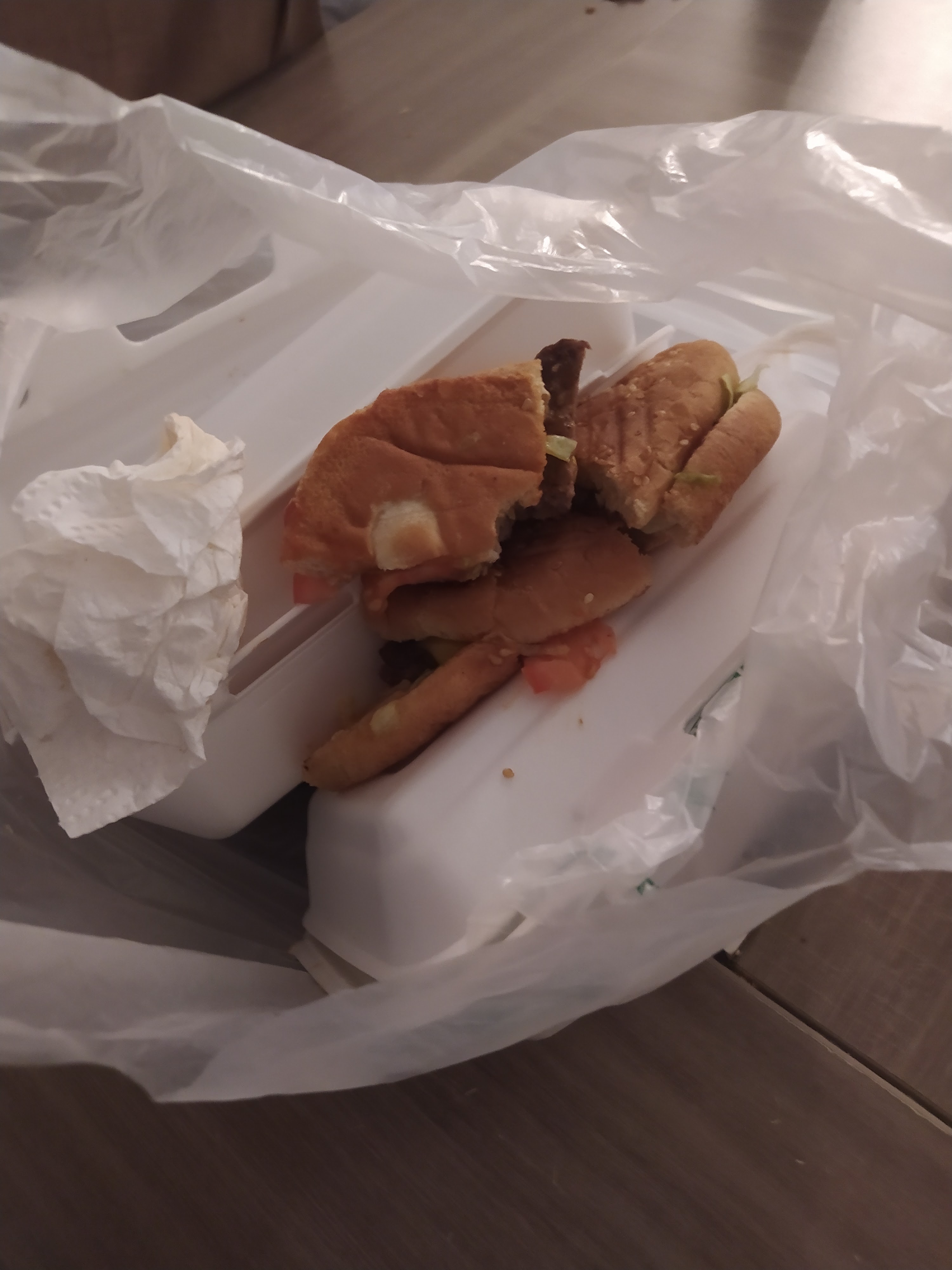 Décevant. Frites pas croustillantes, viande fade, et pain mou. À éviter.