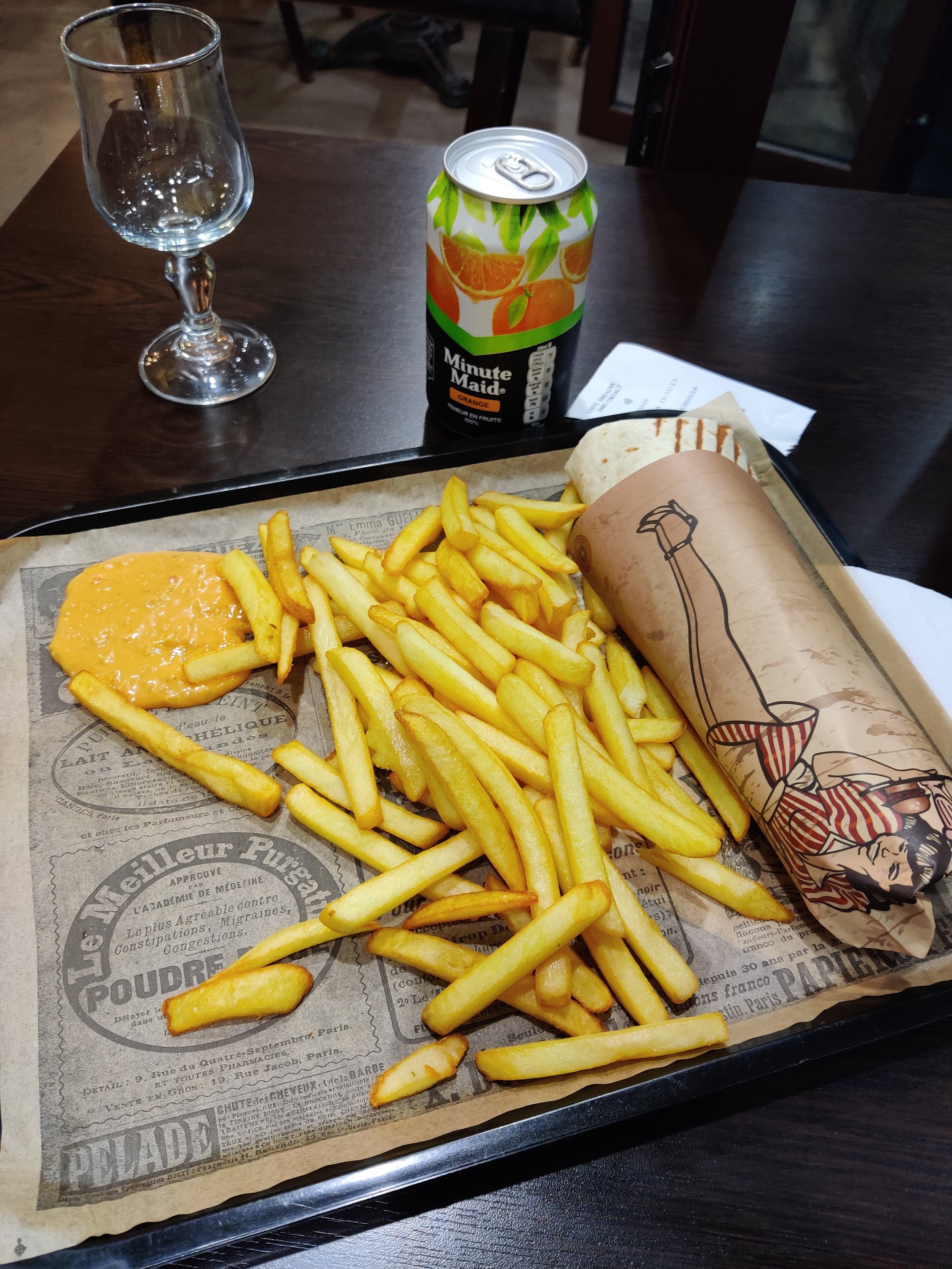 Poulet n'est pa très bien cuit et pa bien épicé j'ai pa aimé sinon cadre pa mal à l'intérieur