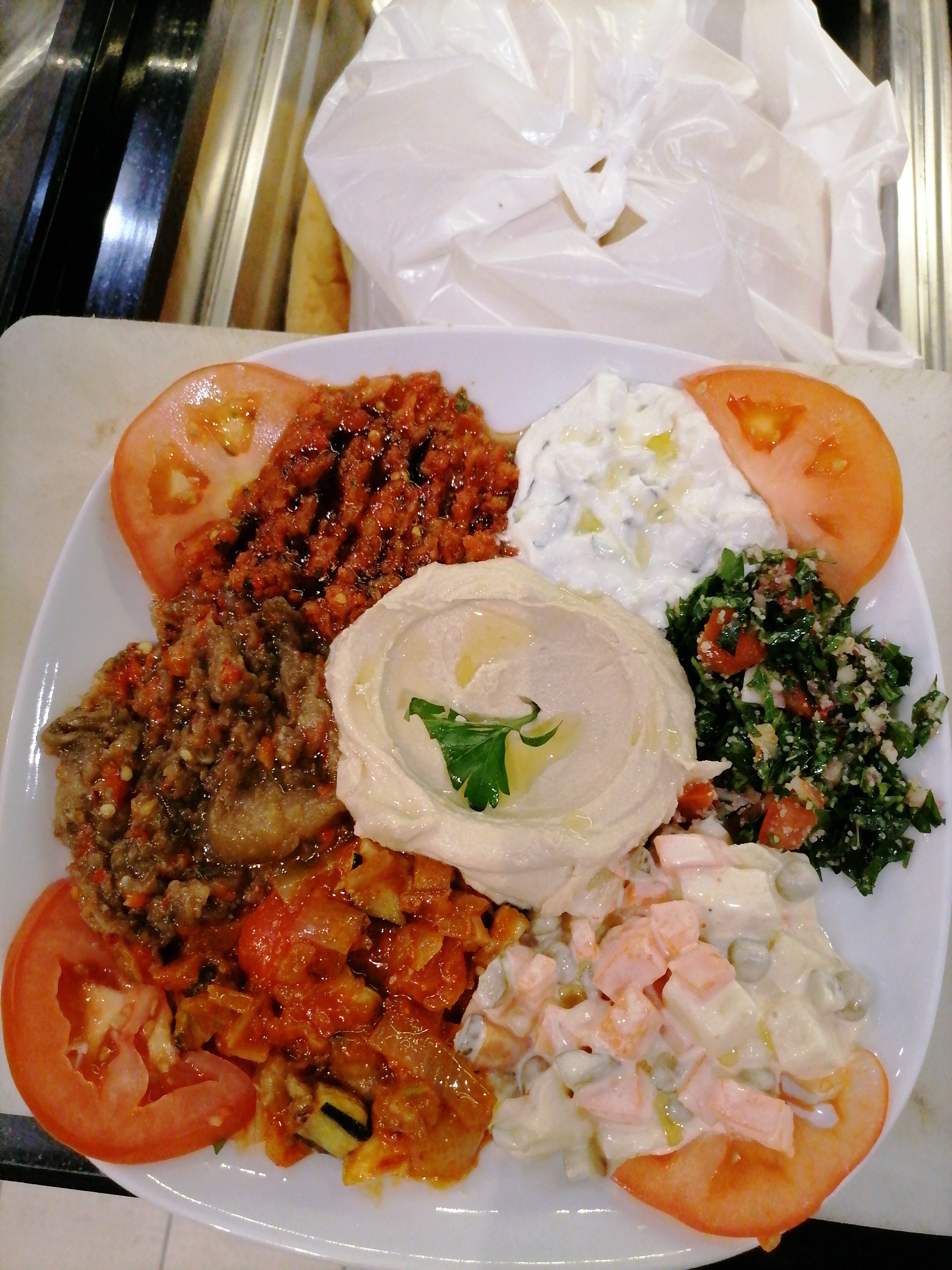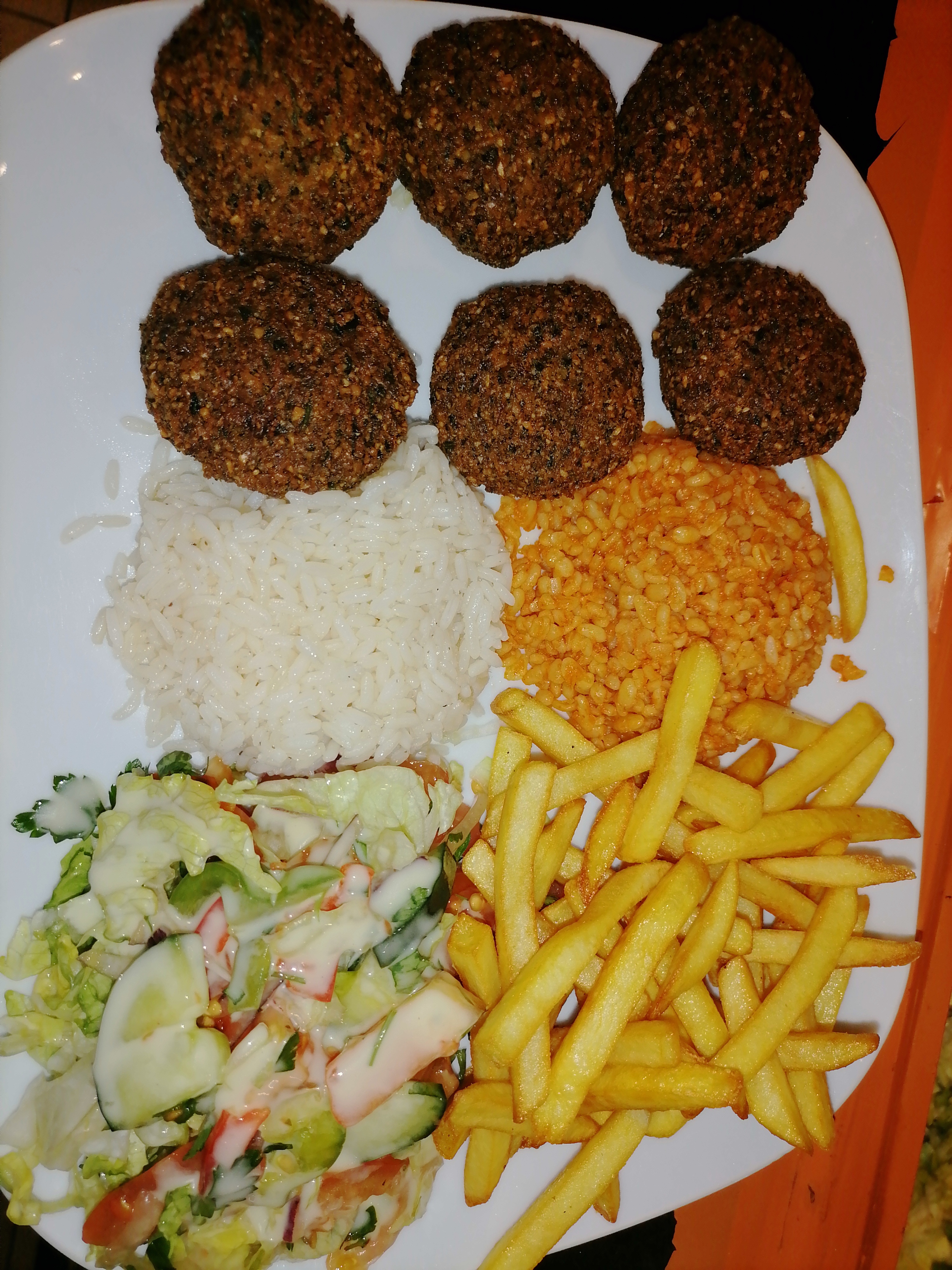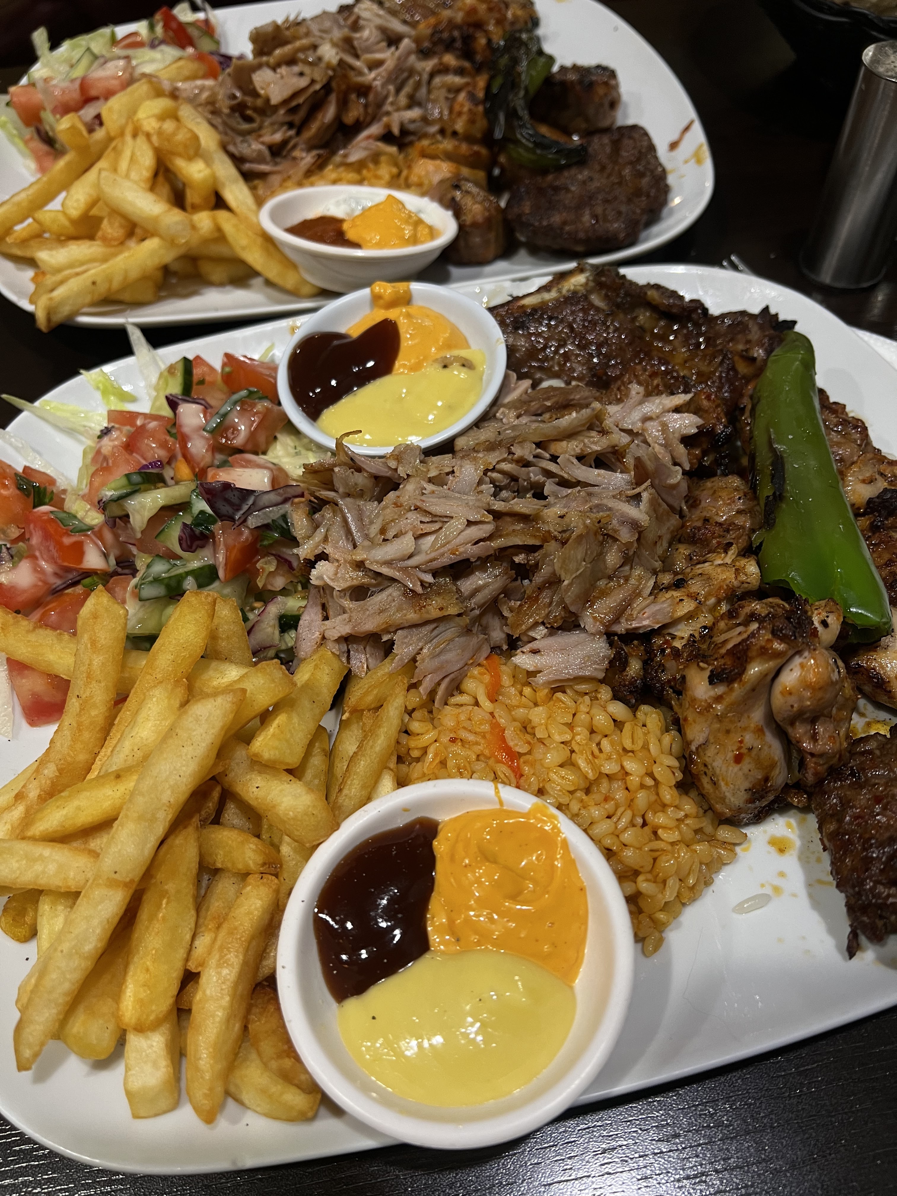 Assiette mixte parfaite, viande de grec, poulet, kefta, côte d'agneau, riz, boulgour, frites tout était très bon. Franchement super content pour ma première fois là-bas. Personnels sympathique et serviable. N'hésitez pas c'est super bon.