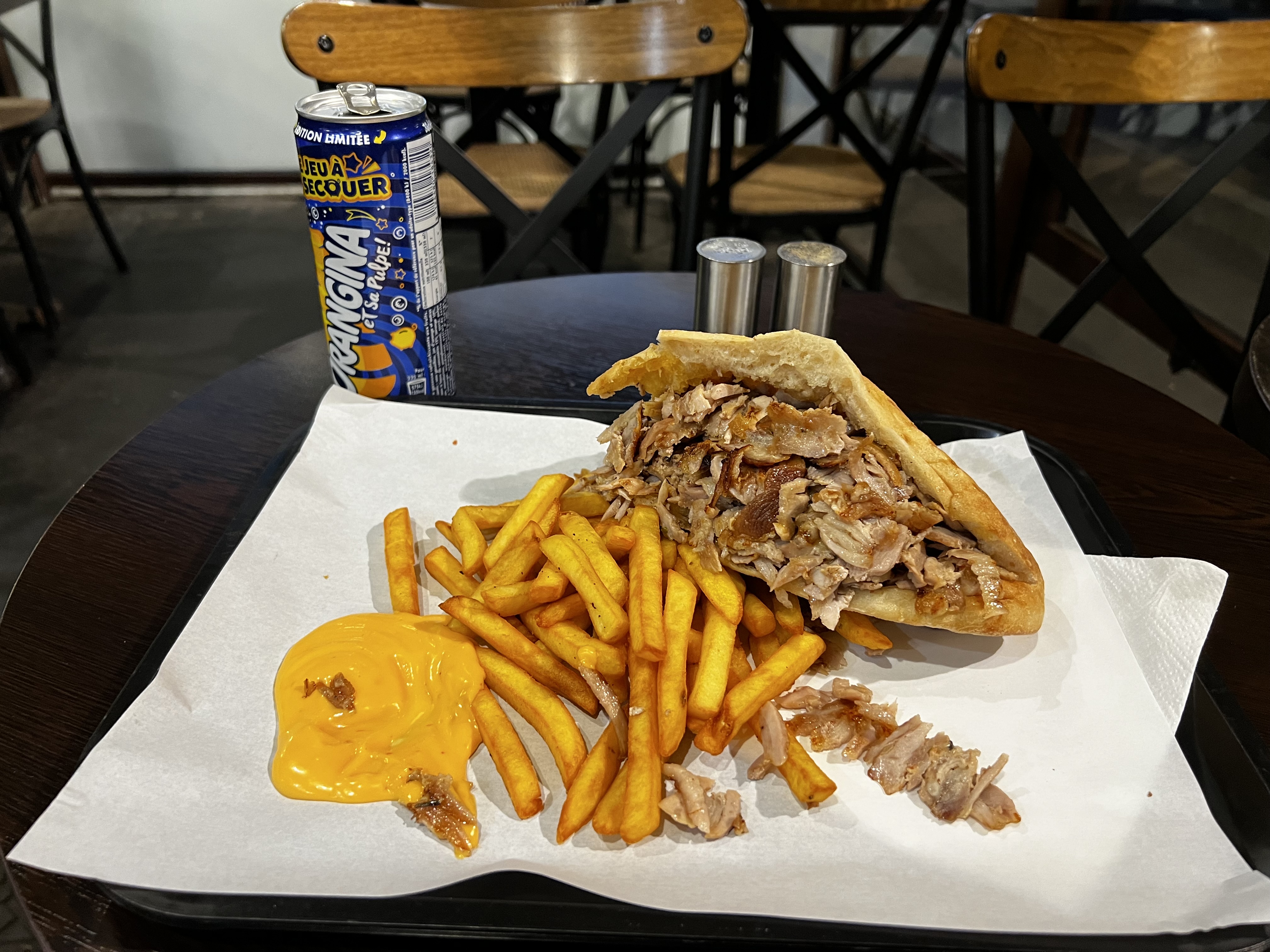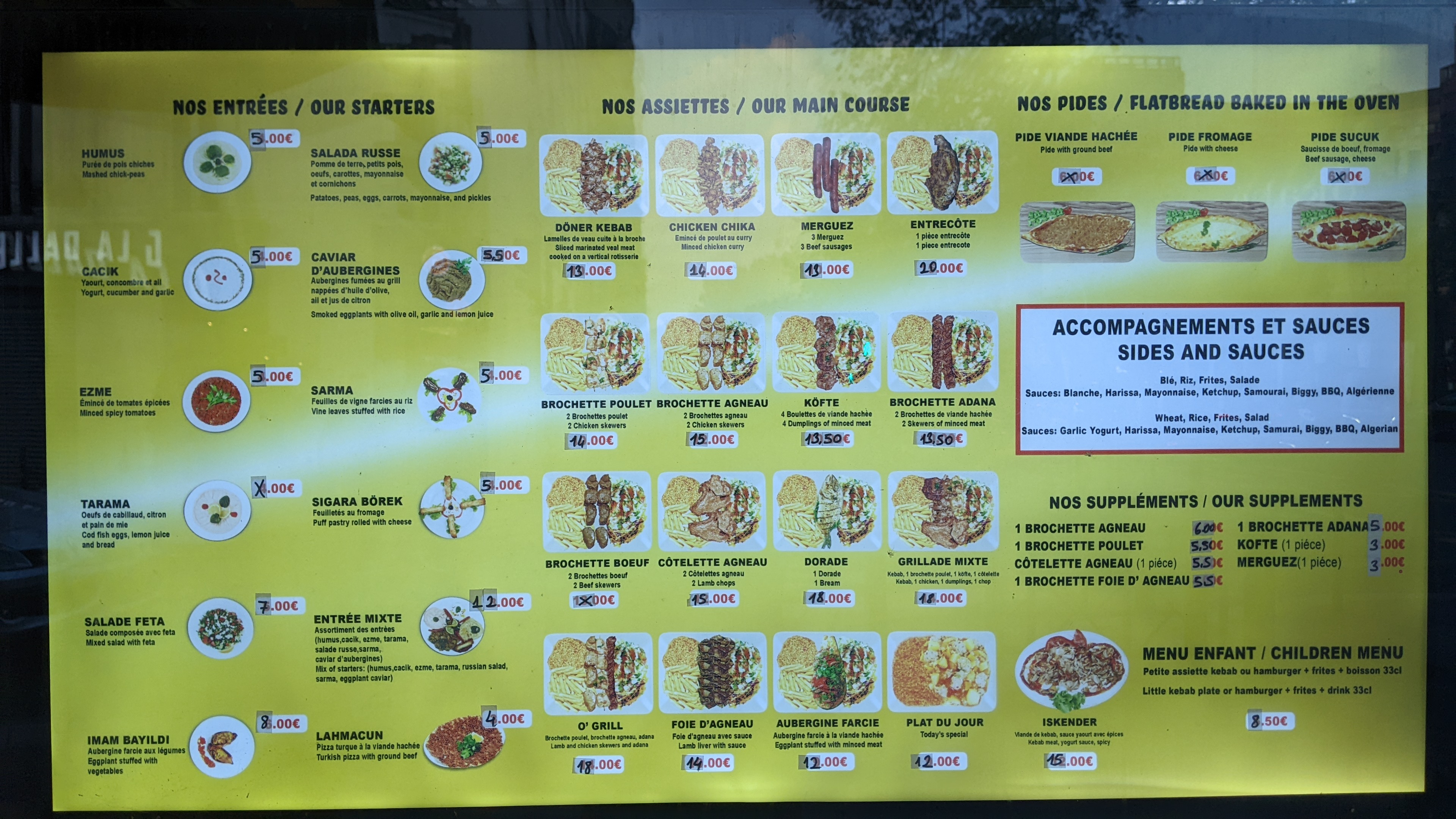 Je suis étudiant, je suis venu avec mes amis et camarades de classe, nous avons été accueillis par un serveur très sympathique qui parle français et anglais, il a pris notre commande et il a même dit qu'il nous donnerait toutes les sauces que nous voulions (dans d'autres restaurants vous avez droit à 2 sauces gratuites seulement) et ils ont eu la gentillesse de nous donner 3 sauces, la portion était énorme et le goût du Sandwich Doner était très délicieux et il ne coûtait que 6,5 euros, j'étais complètement rassasié et satisfait à la fin. J'ai totalement recommandé ce restaurant ❤️❤️