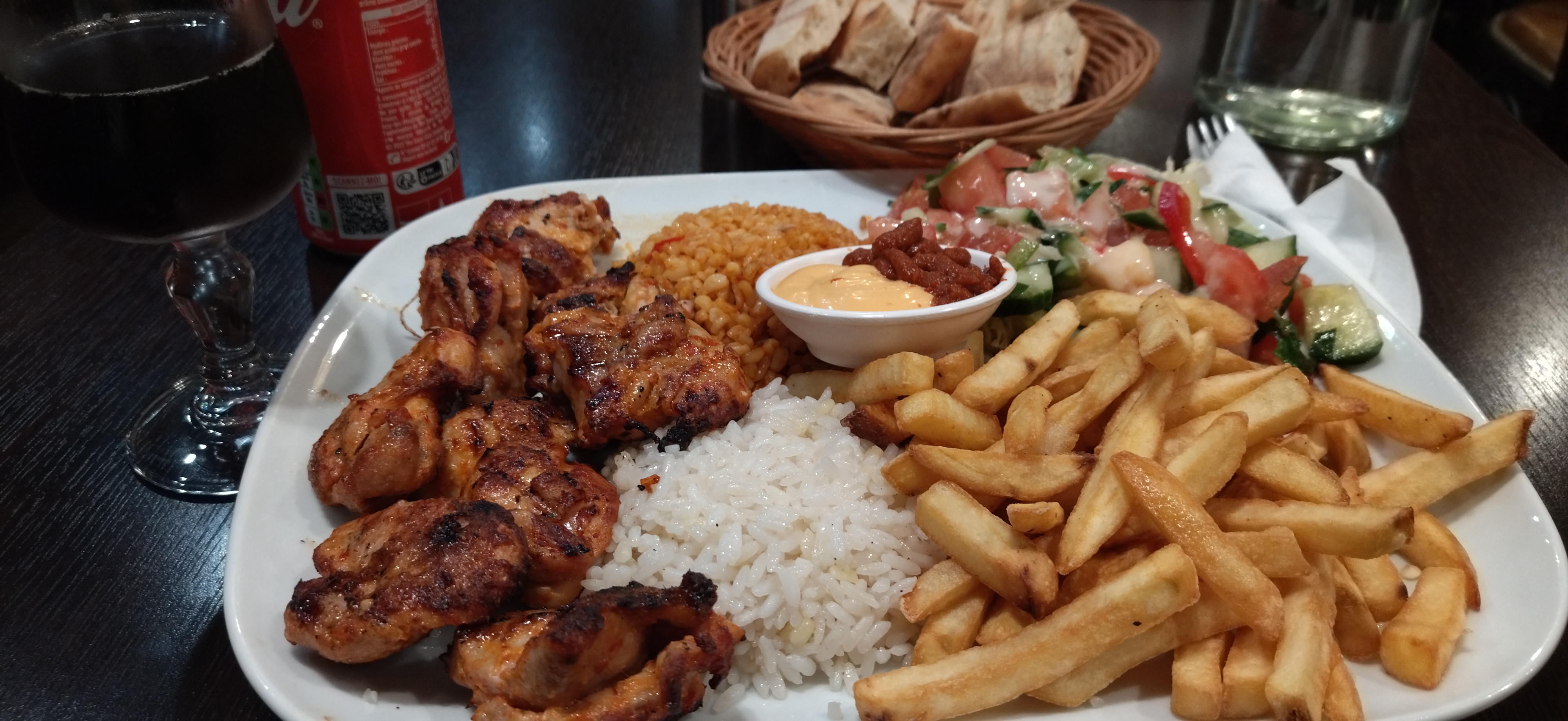 Très bonne grillades dommage que la viande de kebab n'ait pas vraiment de goût elle manque peut être de sel