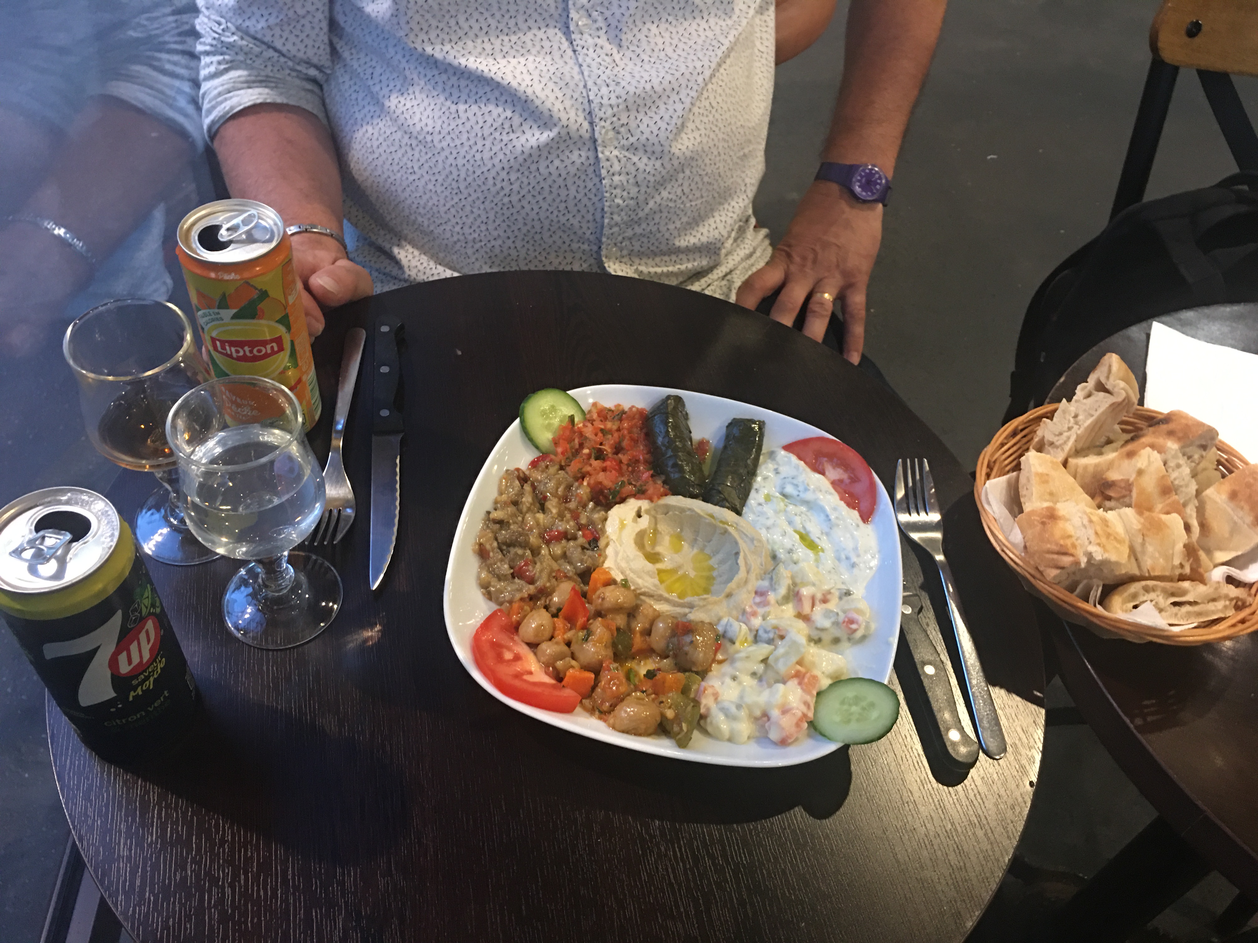 Nous avons attendu au minimum 20 à 30 minutes pour avoir commandé deux assiettes grecques et une bouteille. Attente interminable en sachant qu'il n'y a aucune préparation ou cuisson à faire. Personnel nonchalant froid aucun sourire. De plus j'ai trouvé un cheveu dans la viande de grec et aucune excuse du personnel ils prennent le cheveux et le jette au sol. il m'informe qu'ils vont me préparer une nouvelle assiette mais je refuse car cela ne résoudra rien au problème d'hygiène. je pars sans payer et le personnel me fusil du regard et c'est moi qui leur dis que je suis désolé le comble... Ne jamais réessayer cette expérience.