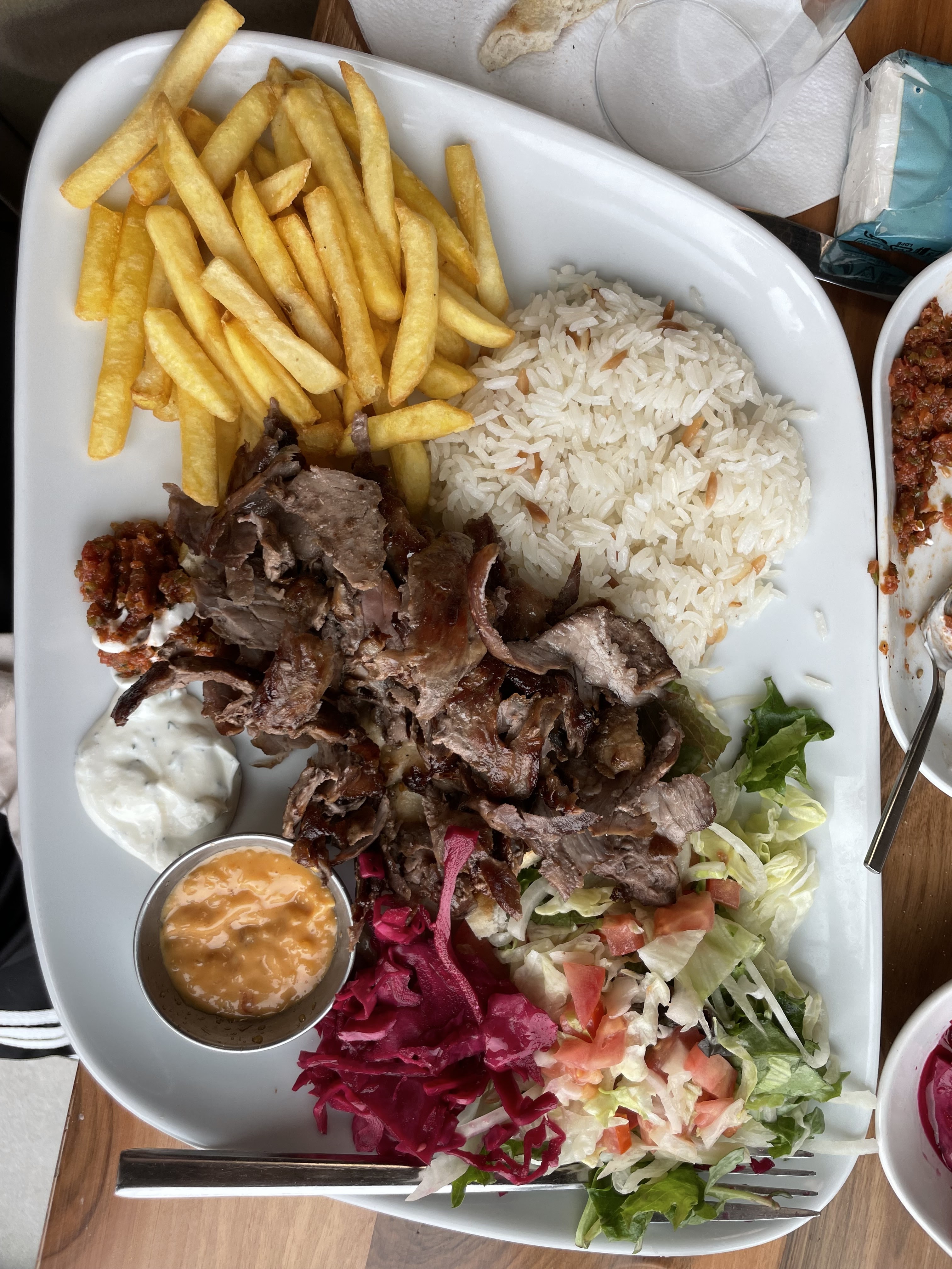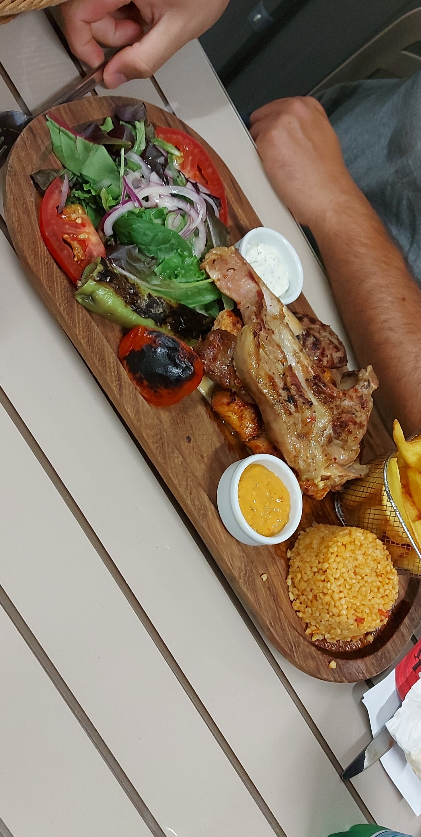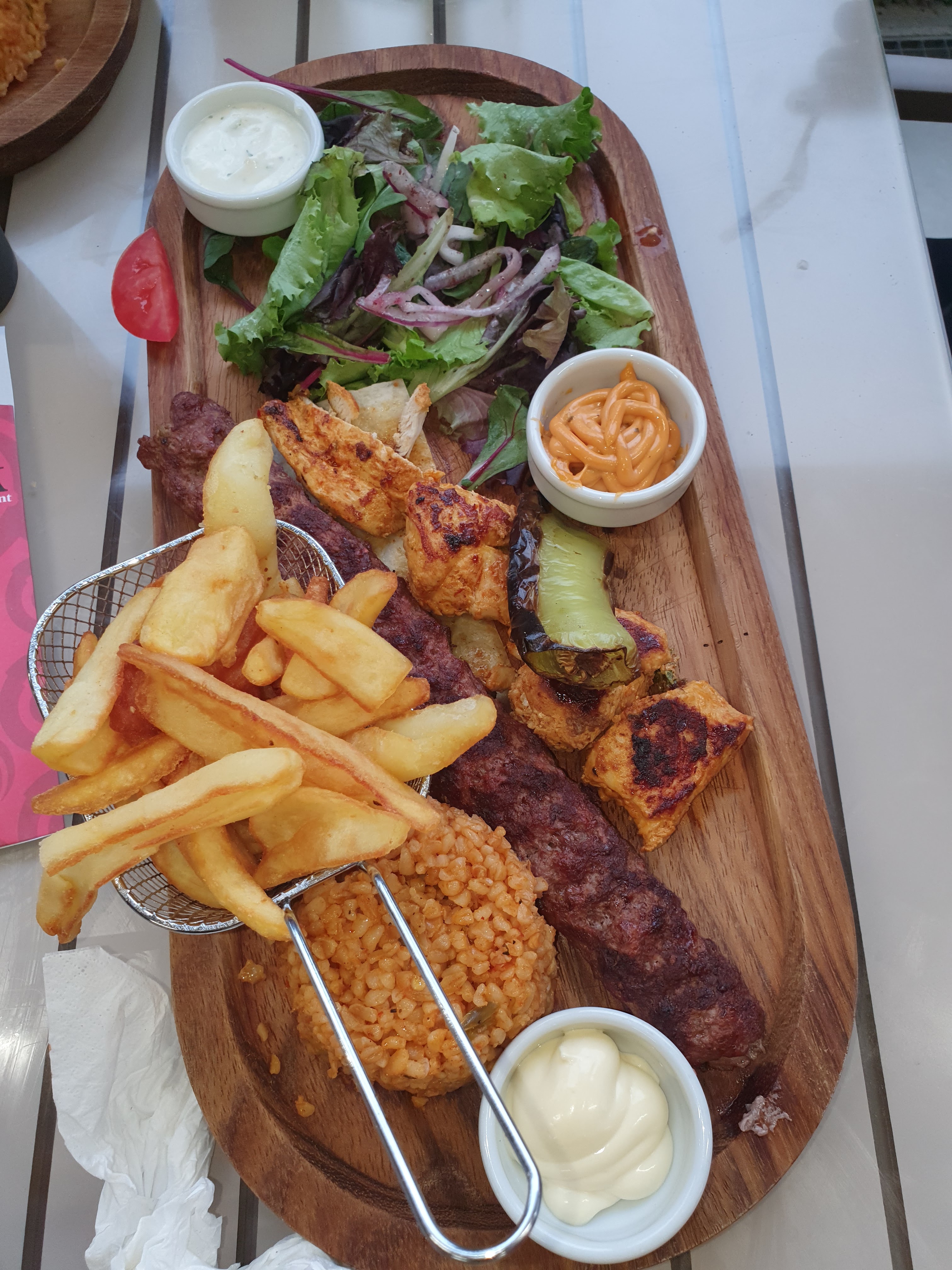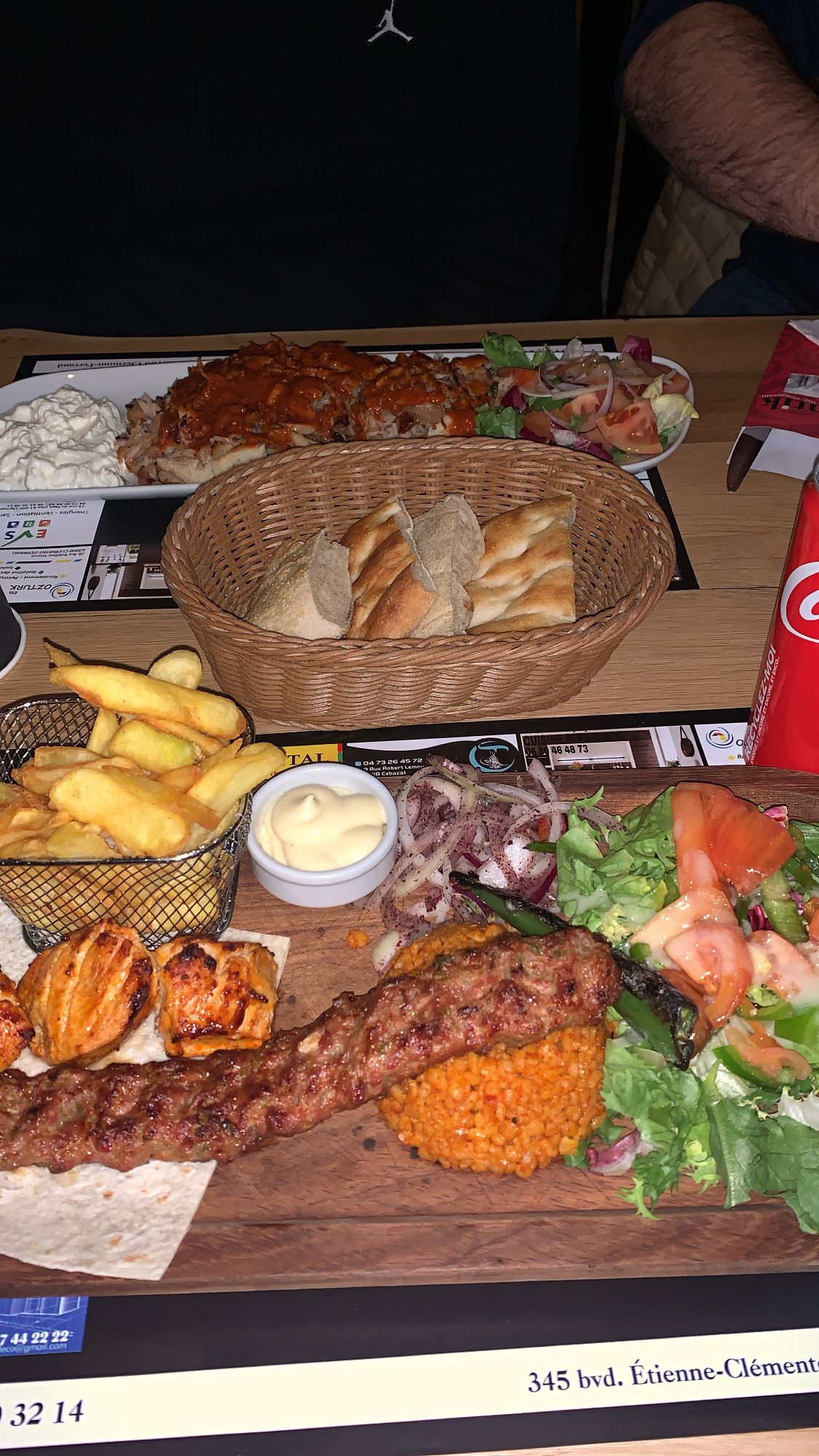 Très bonne ambiance, les salles sont agréables, le serveur que l'on a eu était très sympa, nous avons choisi le plateau à partager pour 3 personnes, toutes les viandes étaient délicieuses, le plat copieux, avant le repas nous avons eu droit à un mélange de différentes sauces typiquement turques ( houmouss, caviar de poivrons, d'aubergines etc..)servies avec un pain succulent fait maison et encore chaud, le prix est très raisonnable, nous avons très bien mangé et avons passé un agréable moment, je recommande et y retournerai avec plaisir!!!!