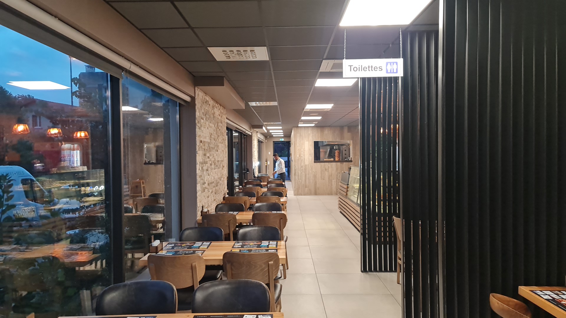 Restaurant moderne avec une jolie déco, l'assise est confortables (nous étions au 1er), éviter le kebab qui est industriel pour préférer les grillades poulet, bœuf, kefta.. (cher pour ce que c'est) , mauvaise surprise en milieu de soirée le restaurant est enfumé sachant que c'était pire au rez-de-chaussée (certainement un problème d'évacuation de la cuisine )