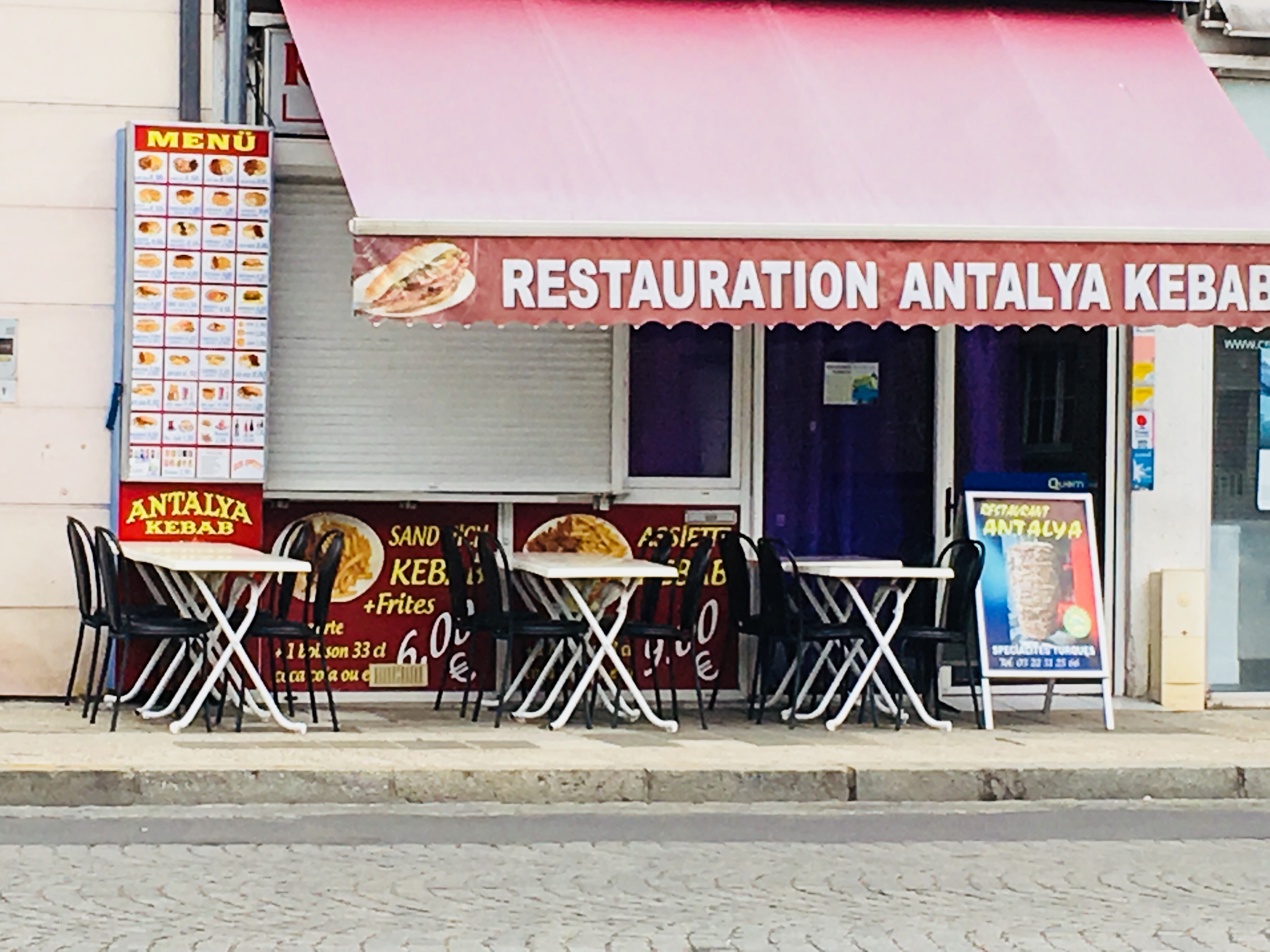 Franchement j avez entendu dire par de Nombreuse personnes que depuis le changement de Propriétaire la qualité était devenue MÉDIOCRE et je ne le croyais pas .MAIS ...... Voilà 2 jour je suis aller y manger avec ma femme et ma fille malgré les échos sur ce resto kebab . Malheureusement des fois je devrais croire certains avis . Déjà des l'entrée tu es mis à la page On te dis pas bjr car t es pas un habitué ensuite tu vois afficher le tarifs de 0.50cts en supplément si tu mange sur place , le 2 coup de tric tu le prends en voyant les prix : Moi j ai prix un simple kebab frite ( et en plus les frites ce battent pas dans ton assiette 15 maximum) ensuite tu constaté que les frites sont dur mais dur et sa pour 8€ + 0.50cts (pour sur place) - Ma femme a prix un Kebab merguez (la aussi soucis : Frite hyper dur , merguez limite griller , pain pas très mou , ) sa pour 8.50€ + 0.50cts (pour le sur place - Ma fille a prix un libanais simple 8.50€ +0.50cts sur place elle pas de fromage dans le libanais et la c froid . Et chacun à prix 1 coca le seul truc correct du repas. Bien sur on informe la personne qui nous encaissé 35.50 € pour cet dobe des soucis rencontrer et le redis au cuisto qui lui fait l étonné et on nous fait pas de réduction, pas d excuses ni rien donc je vais faire le nécessaire pour que personne ne revivent cette situation culinaire qui es un désastre. On paie hyper chère pour un plat qui et loin de valoir la moitié de ce prix je ne vous recommande pas ce kebab allez plutôt ailleurs (Vers le musée par exemple ou même où même face à la piscine vous y mangerai un peu mieux et moins cher surtout. L anthalya je vous l avez dis que je laisserai un mauvaise avis car aucun respect des gens qui vous font vivre grace a leur argent et vous leur servir des sandwich kebab chère et de qualité pas top du tout . Même si êtes de mauvaise foi je ne suis pas le seul à vous faire ces remarques sur vos produits, Service, qualité et tarifs , Vos clients vous font vivre respecter les c est la règle d or dans le commerce et surtout en restaurati