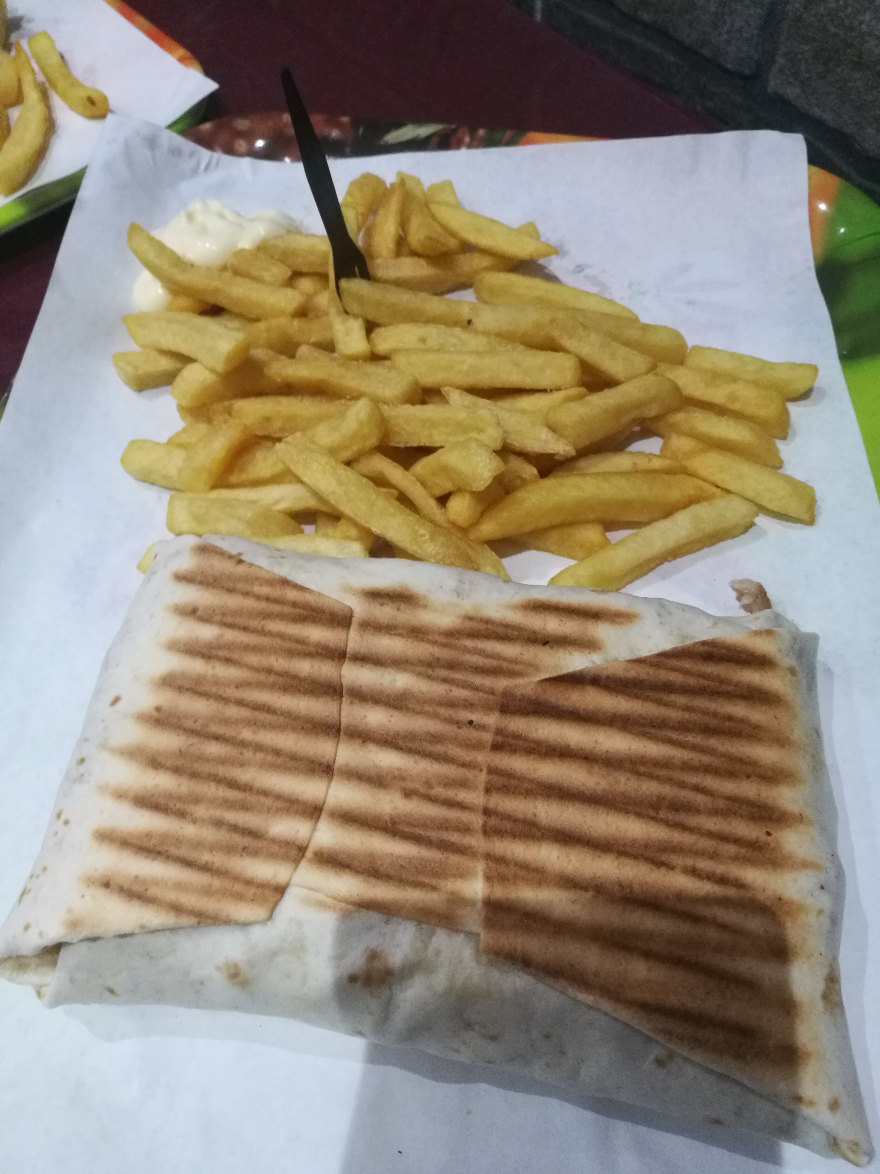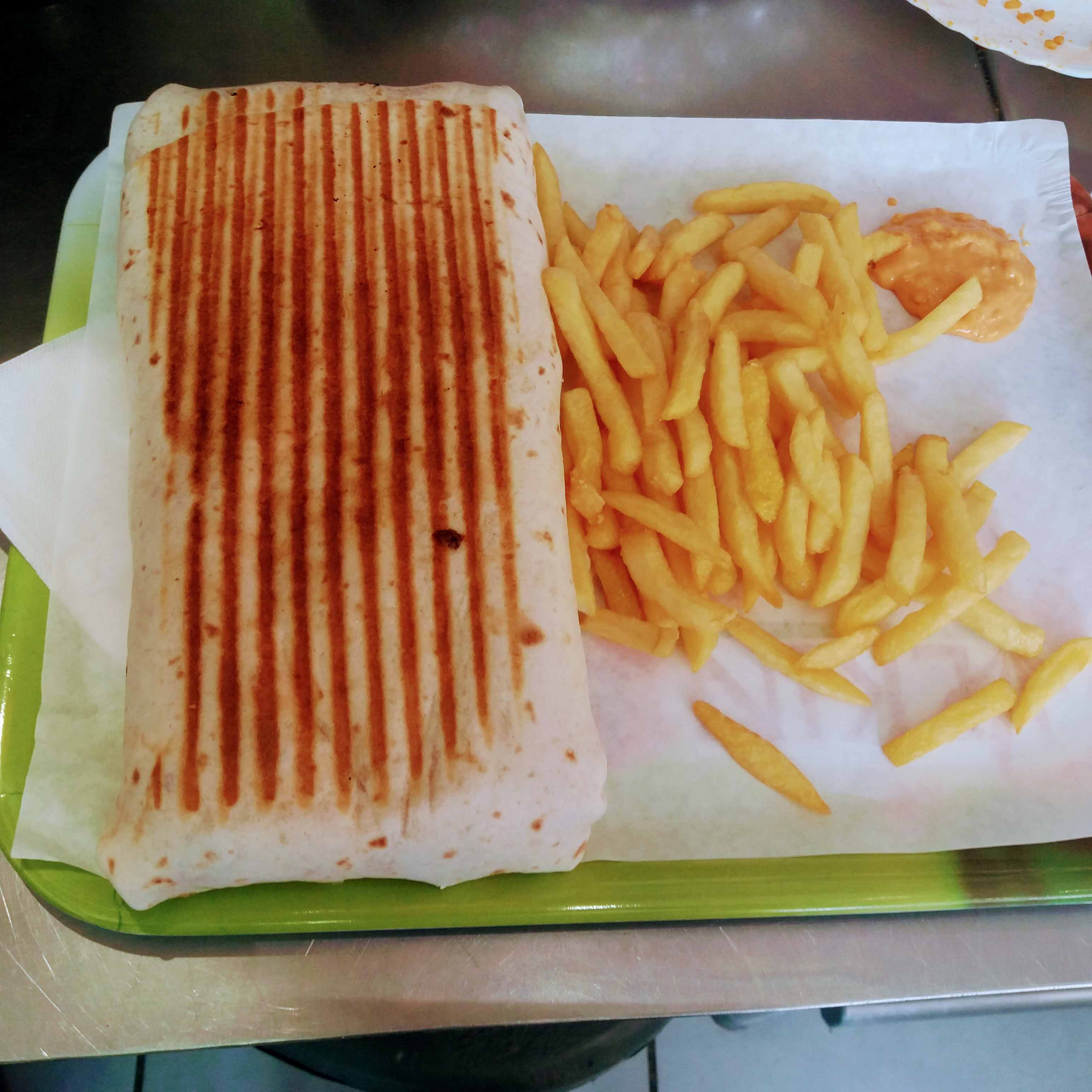 Kebab trop moyen. Je m'attendais à un pain rond comme dans tous les kebab. La sauce n'est pas terrible. Pas de frites fraîches.