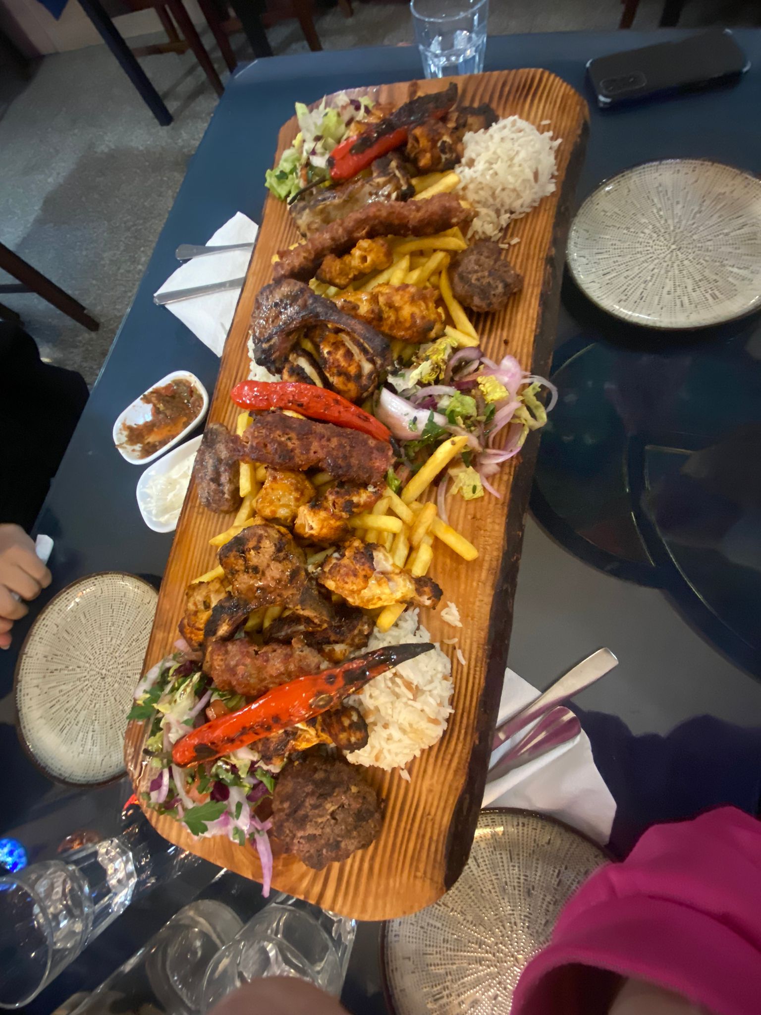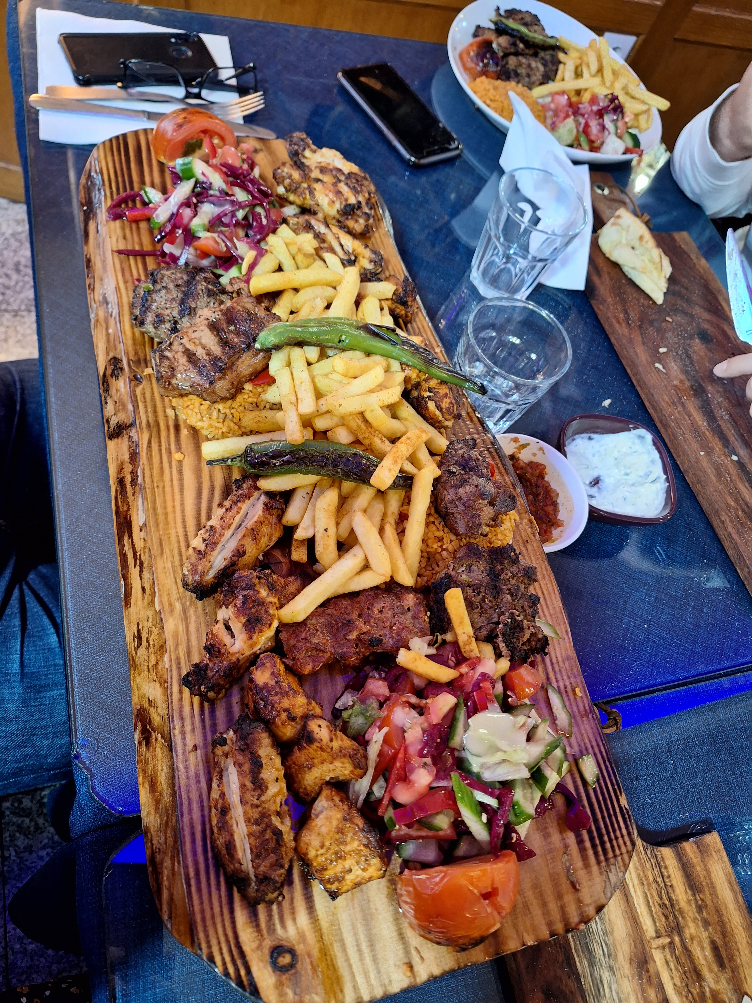 Très bon plat pour 2personnes assortiment de 5viandes 2. assortiment de salade etc bien copieux pas cher 38 euros pour 2 personnes