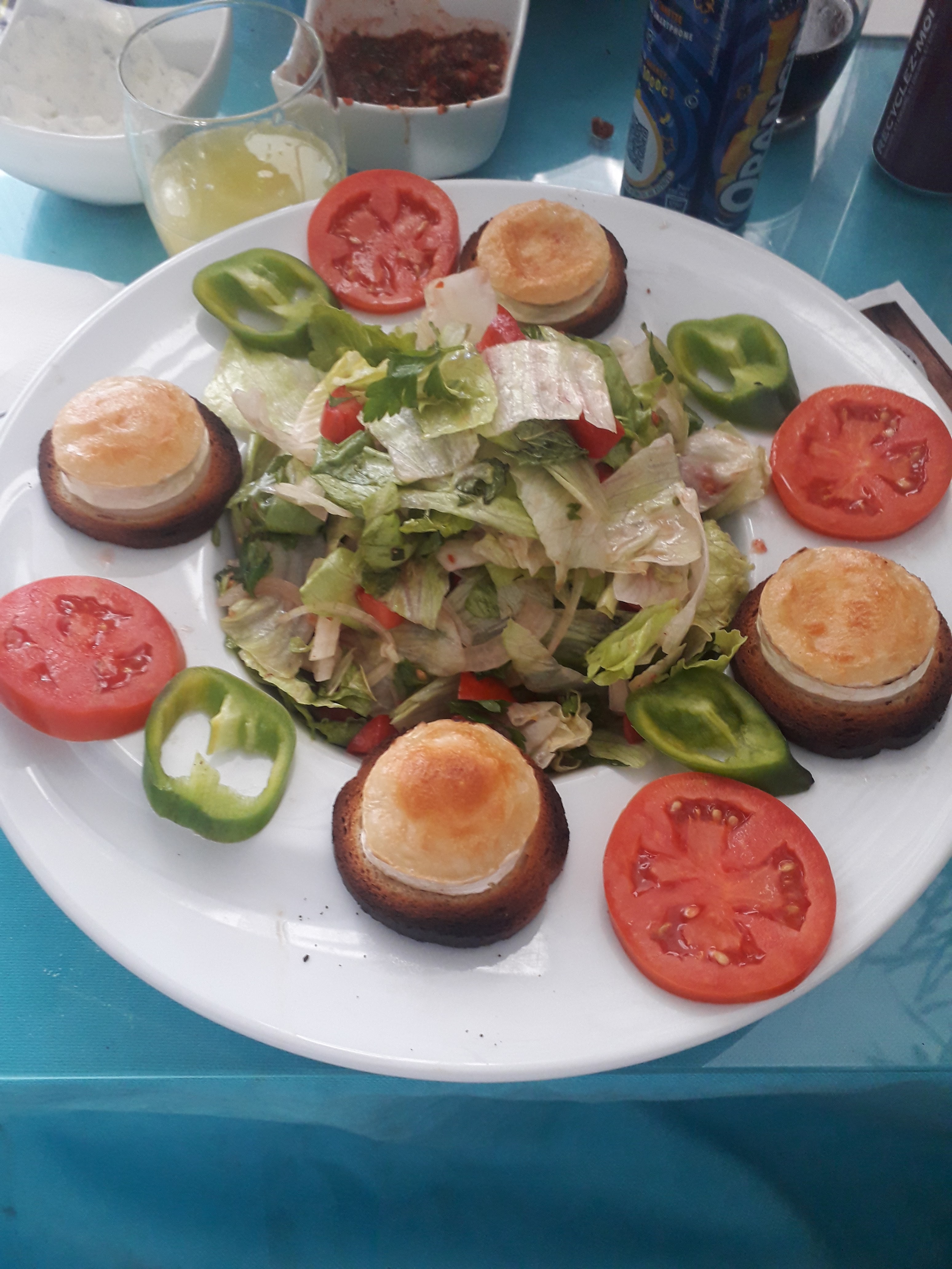 . Arrivés à 19h45’ Nous avions un bébé et espérions en finir au plus tard à 21h , nous fûmes servis a 21h14’ Et pour cela il fallait réclamer ses plats par deux fois . En un mot le service en terrasse est archi nul, d’ailleurs les tables ne sont même pas débarrassées ! Notre table la 53 était branlante , par 2X mon fils s’est attelé à la réparer qd il a trouvé le bout en fer qui y va au pied ,les serveurs l’ont vu et personne n’a fait le geste de s’en occuper ! Une étoile c’est chèrement récompensé ! Mon pide kebab contenait exactement 4 lamelles de viande , le fromage cachant le reste ,lol bravo l’arnaque ! C triste , vraiment triste ! La salade est un reliquat du midi certainement. J’ai les photos que je pourrais faire voir si le patron s’en soucie 😉 vraiment…sinon l’addition vaut bien plus que l’ensemble !