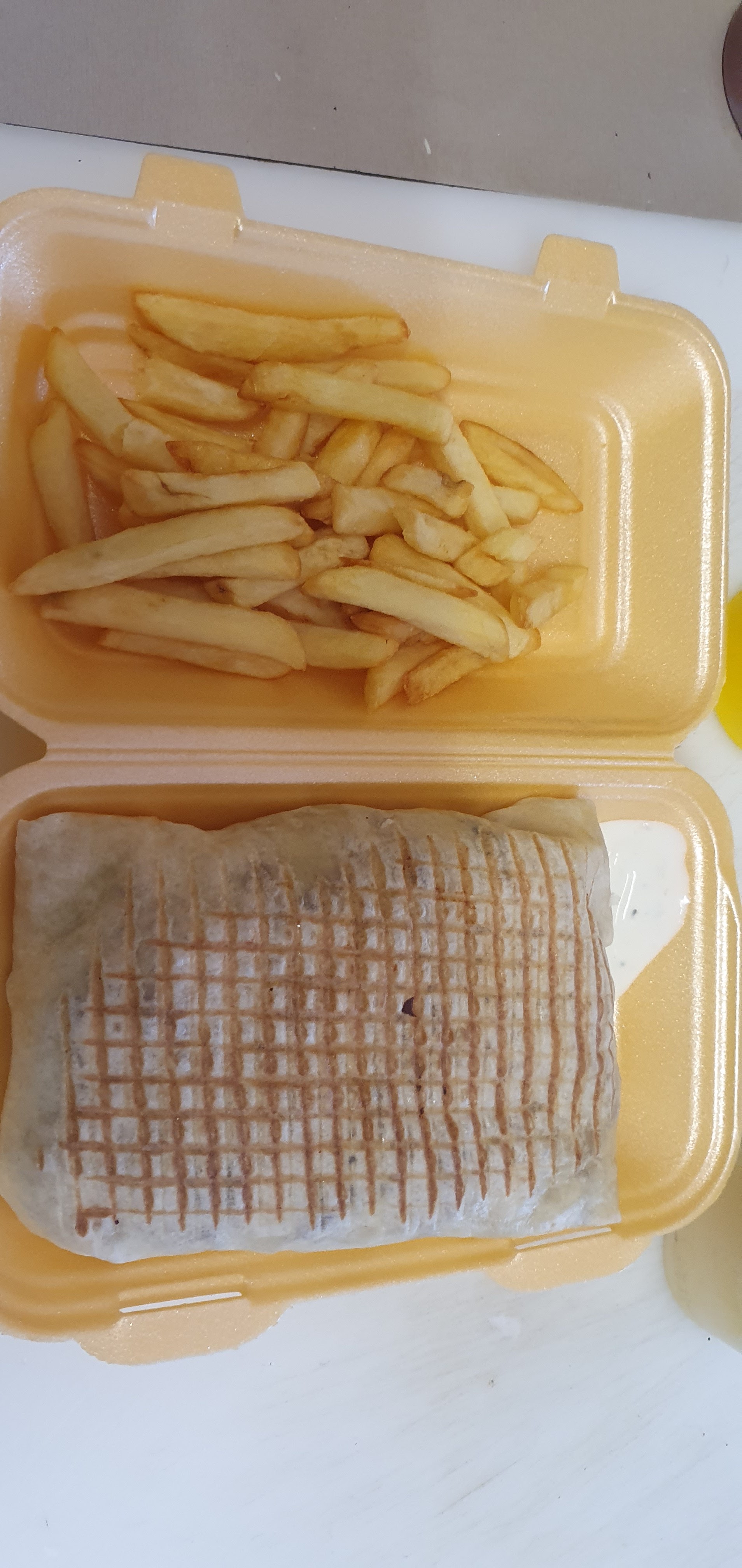 Kebab bien garnis mais très sec, on cherche encore la sauce… les frites? Du carton cuit à l’huile.. Le pain? Aussi sec que la semelle de ma pantoufle Prix trop élevé par rapport à la qualité! A améliorer