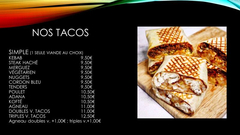DELICIEUX!!! leur tacos est ultra bon et se qui est bens ses que vous avez pas une impression de ventre qui a pas assez manger la je peux vous dire qu'il mais de temp a digérée