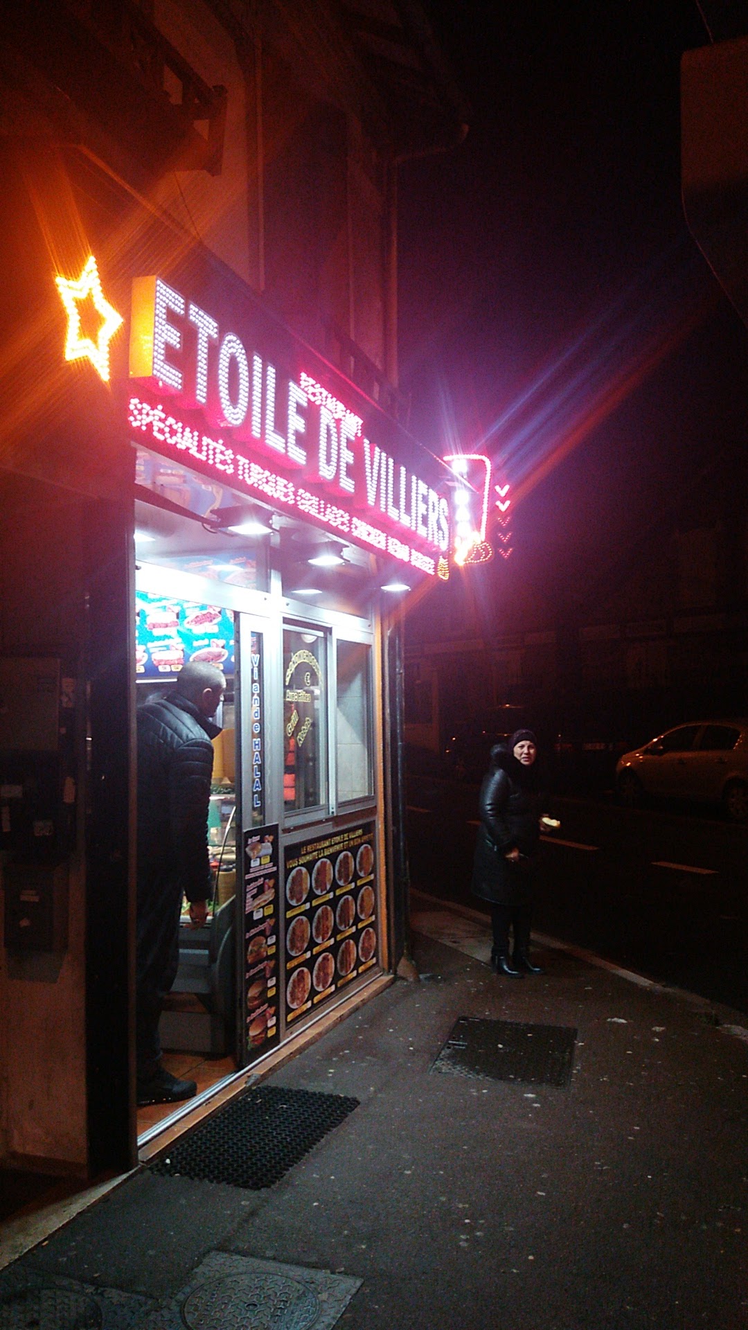 Pris d’une fringale, nous voici attablés à l’Etoile, illustre kebab dont la renommée dépasse les frontières de Villiers-Sur-Marne. Lorsque l’on pousse les portes de cet établissement, on peut s’attendre à découvrir une ambiance chaleureuse, un tourbillon de saveurs, des mets raffinés… Pari partiellement réussi. Les frites, bien que généreusement servies, ne peuvent à elles seules sauver l’ensemble de la prestation ; la viande, faible en quantité, ne laisse pas un souvenir impérissable. En revanche, si vous tenez à impressionner votre charmante compagnie, alors vous êtes à la bonne adresse. Et pour cause ! Vous pourrez assister au palpitant spectacle du maitre kebabier préparant sa broche, empalant voluptueusement les tranches de viande les unes sur les autres. De quoi en mettre plein la vue à la belle âme qui vous accompagne (d’ailleurs, on se revoit quand ?). Outre cette performance très plaisante, la décoration, sobre mais délicate, offre un cadre agréable dans lequel il fait bon vivre. Un univers immaculé, où se mêlent parfums de viandes et autres effluves aussi subtiles qu’alléchantes.