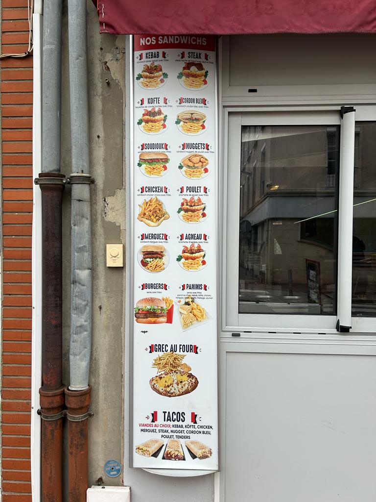 Tacos sans sauce fromagère, kebab frites en galette, salade tomates oignons au choix. Bonne viande et très bon accueil, et l'un des rares ouverts le dimanche.