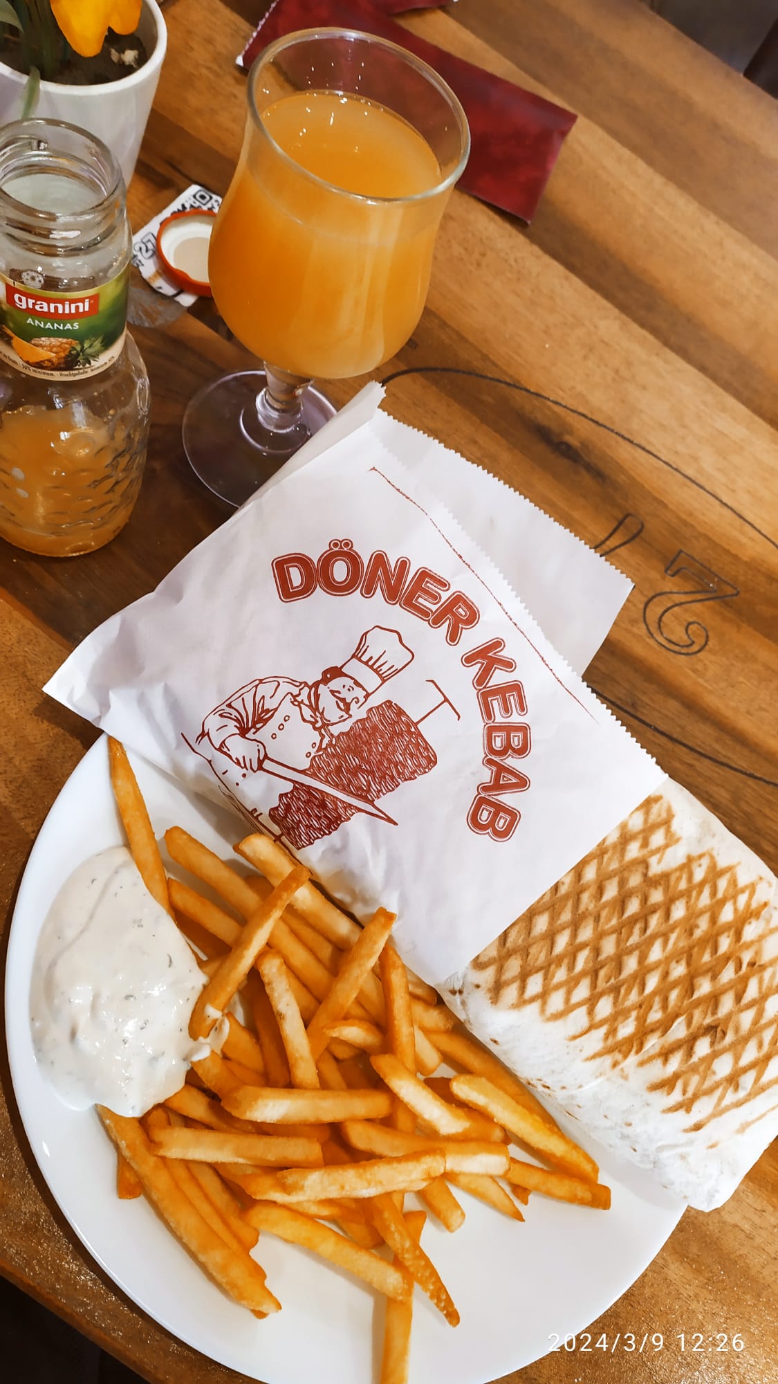 Rien a dire c'était très bon. Les döners c'est fait maison et très bon, assiette un peu petit mais ça suffit. Les prix sont abordable. Je vous conseille vivement.
