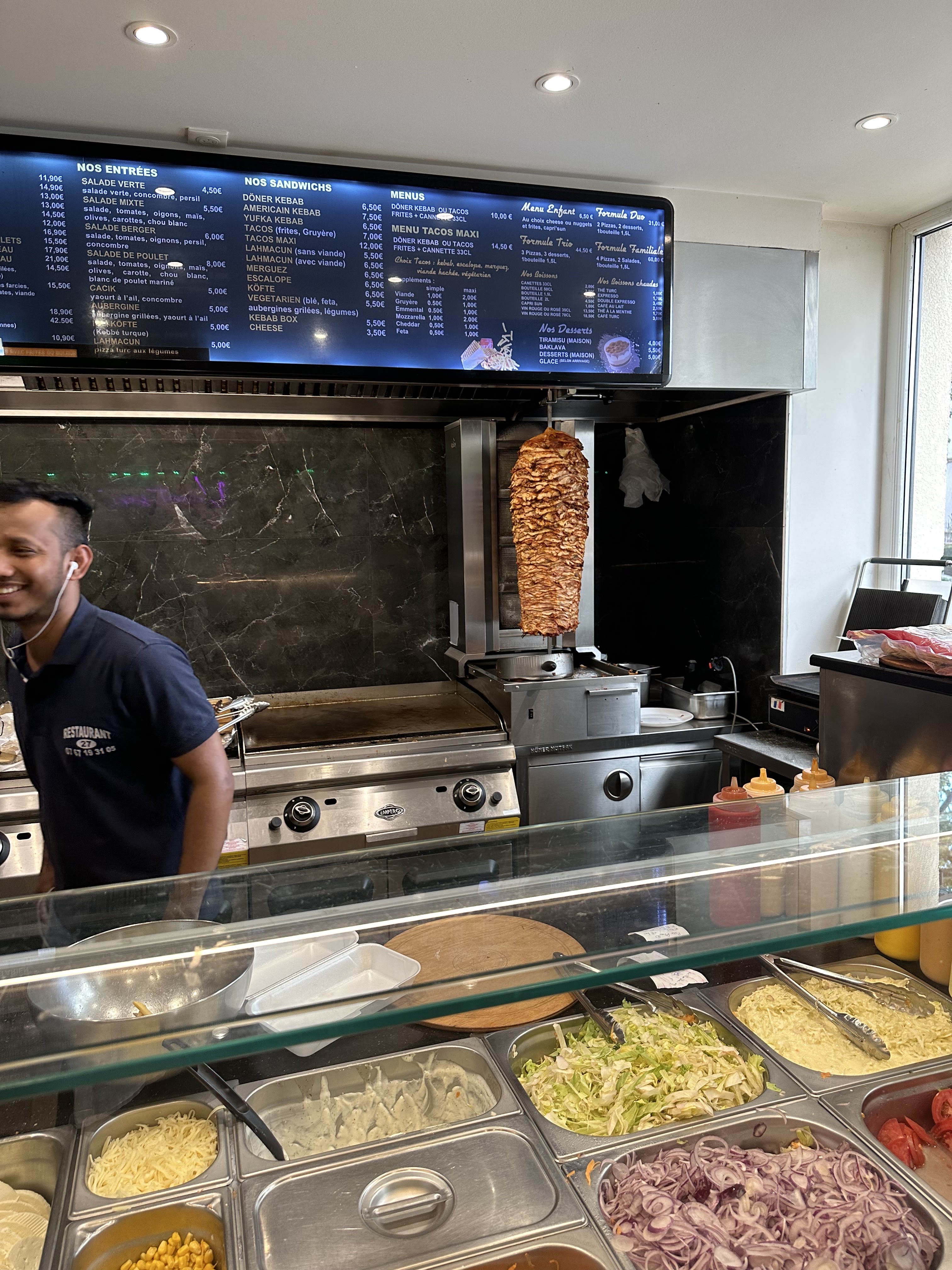 Peu importe ce que vous allez prendre kebab ou pizza c'est super bon, le prix est correct tout le monde vous accueille et vous dit bonjour avec le sourire très bon endroit .