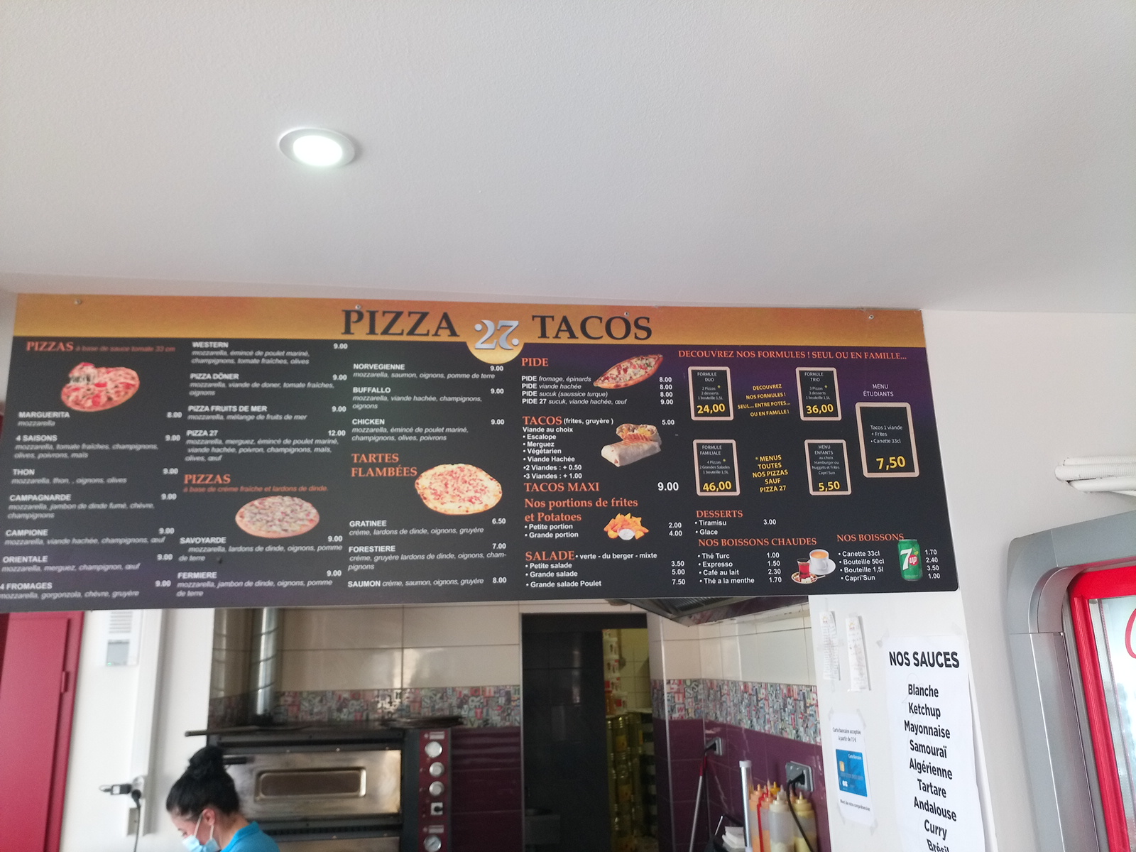 De bons tacos et pizzas, quelques erreurs des fois dans les commandes mais c'est rare.