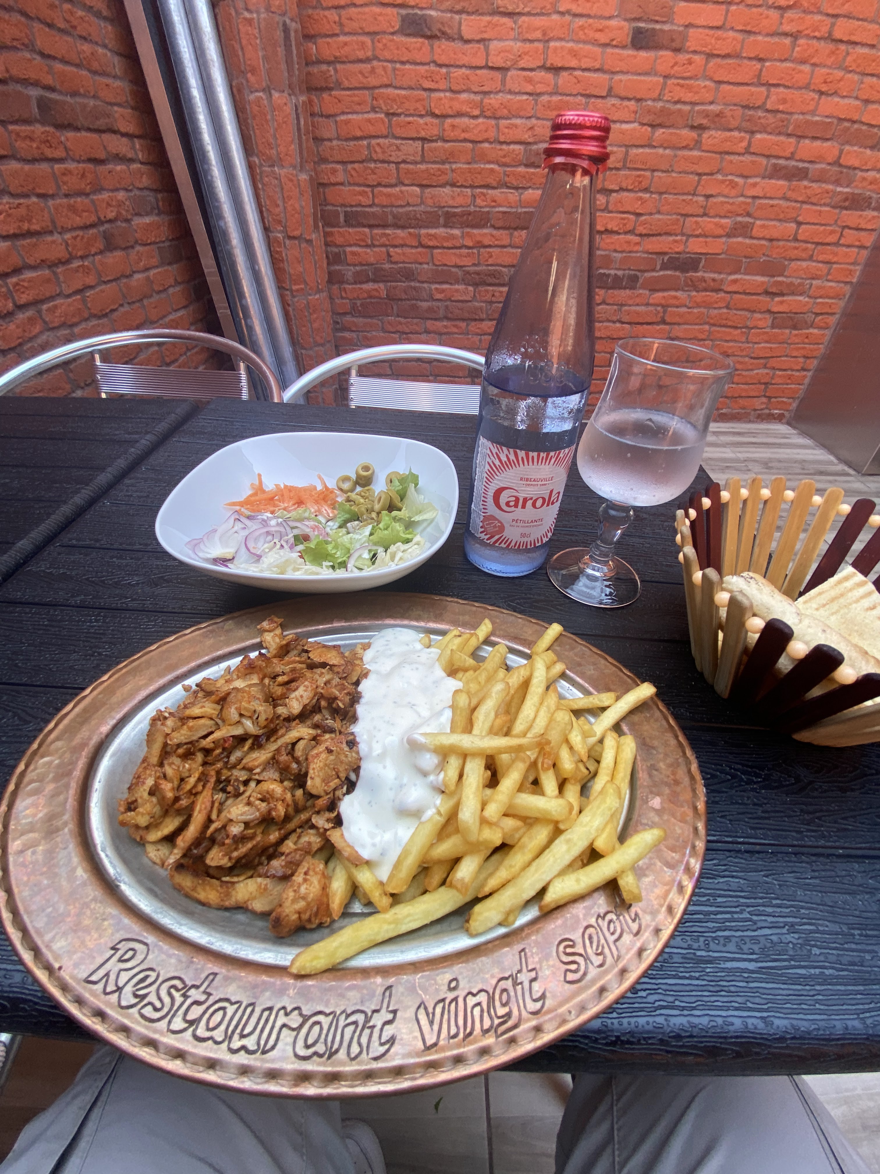 Menu kebab correct mais cher (13.90 avec café) musique assourdissante et temperature 10 degrés pas de chauffage, bcp courants d’air, et incapable d’offrir le café vu le défaut de chauffage .. et café vraiment pas bon! J’y remettrai pas les pieds mauvais moment ..