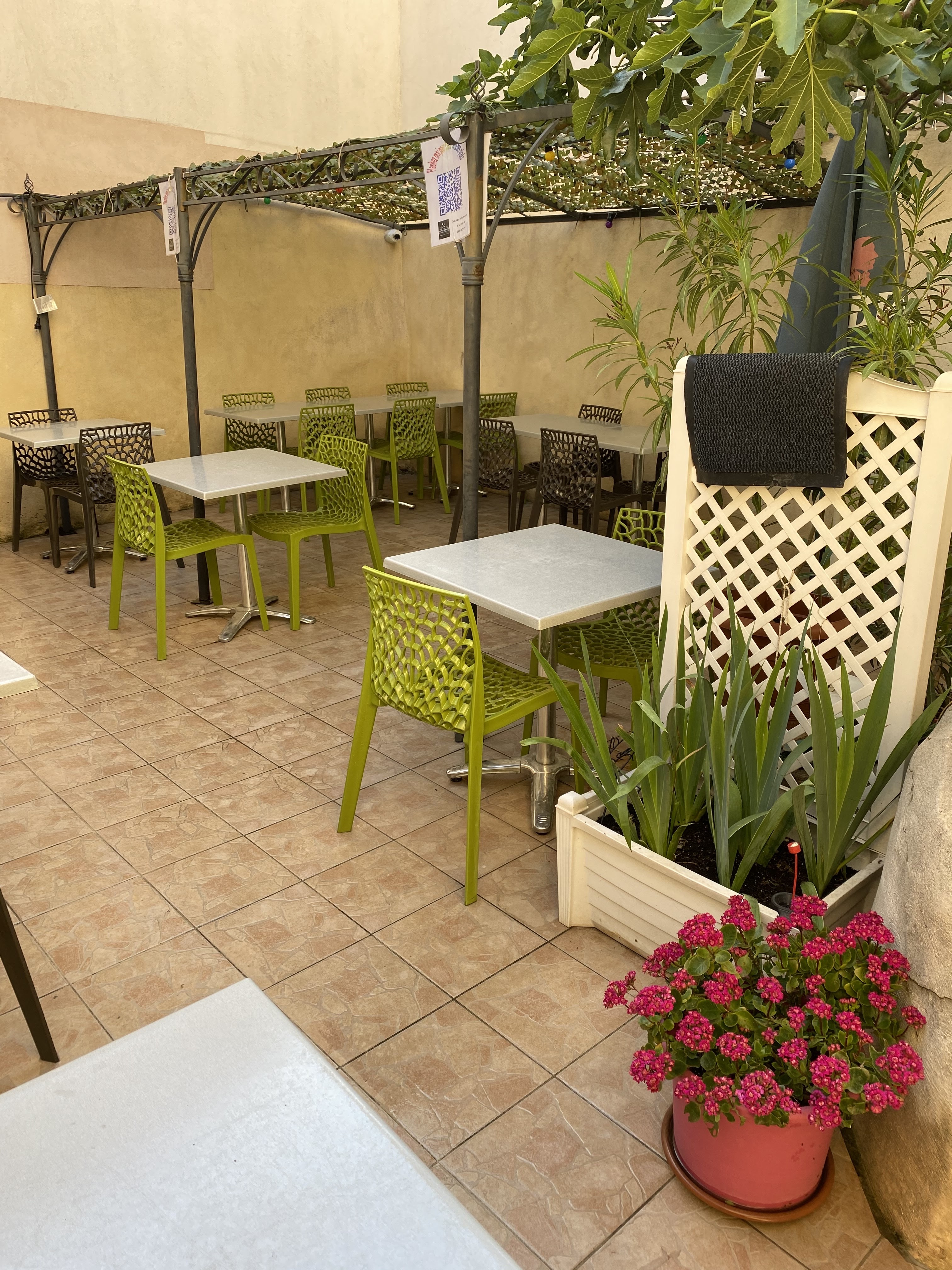 Personnel très avenant. Terrasse tranquille. Cuisine fraîche maison. Top. J'oubliais petit couple oiseau chantant et guitare musique zen! Prix super corrects.