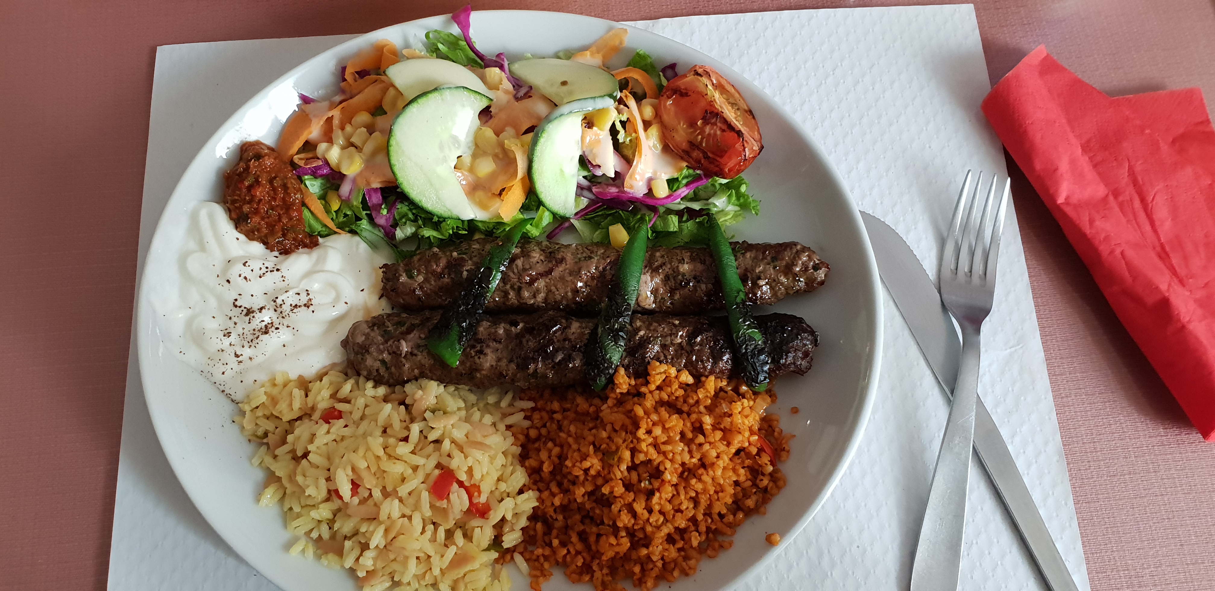 La viande grillée et le doner sont très savoureux et tendres. Le restaurant est calme car c'est une rue pas au milieu de la ville. Le couple est sympathique et gentil. Nous voulions commander deux plats de poulet pour nos enfants, alors elle nous a conseillé de prendre un seul plat car la quantité serait importante, nous avons beaucoup aimé... ##Il n'y a qu'une seule chose qui ne nous a pas plu, c'est que les prix sur la carte sont différents des prix que nous avons payés (Coca: coûte 2 euros et nous avons payé 2,80).(eau gazeuse 2 euro ->2.50 ) (ice tea 2 -> 2.80) ##