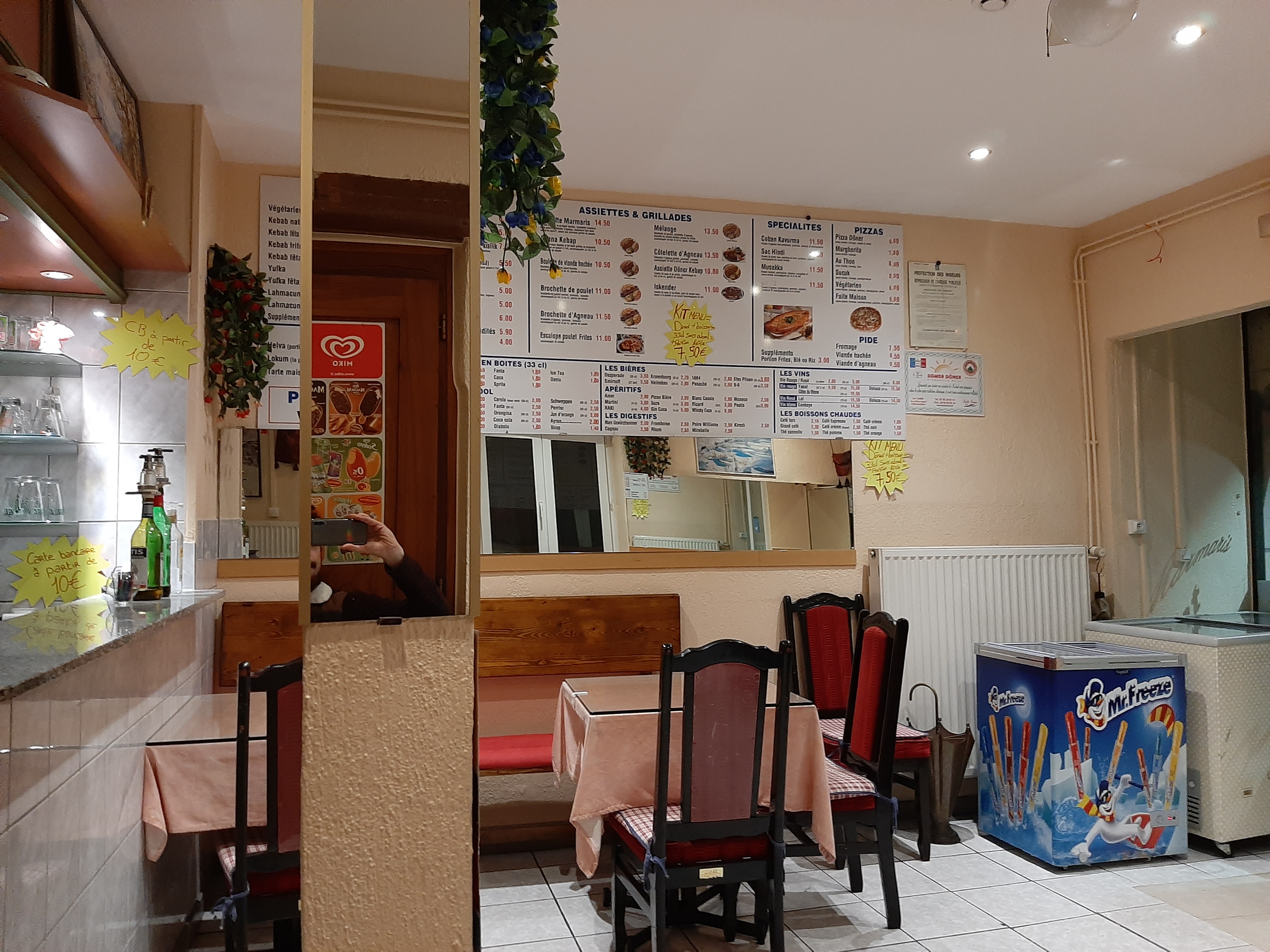 Ce lieu installé dans un immeuble ancien typiquement alsacien, est pas seulement un Doner mais aussi un vrai restaurant de spécialités turques. J'y suis venue 1 seule fois (pour l'instant) pour un Kebab tout à fait classique, bon et copieux sans être énorme comme certains autres (mais est-ce vraiment nécessaire ?). Le personnel est aimable et attentionné, les locaux sont propres et suffisamment spacieux pour ne pas être obligé de rester assise juste à coté de la porte d'entrée...Le décor est chaleureux. Ici on vient pour passer un moment agréable et tranquille.