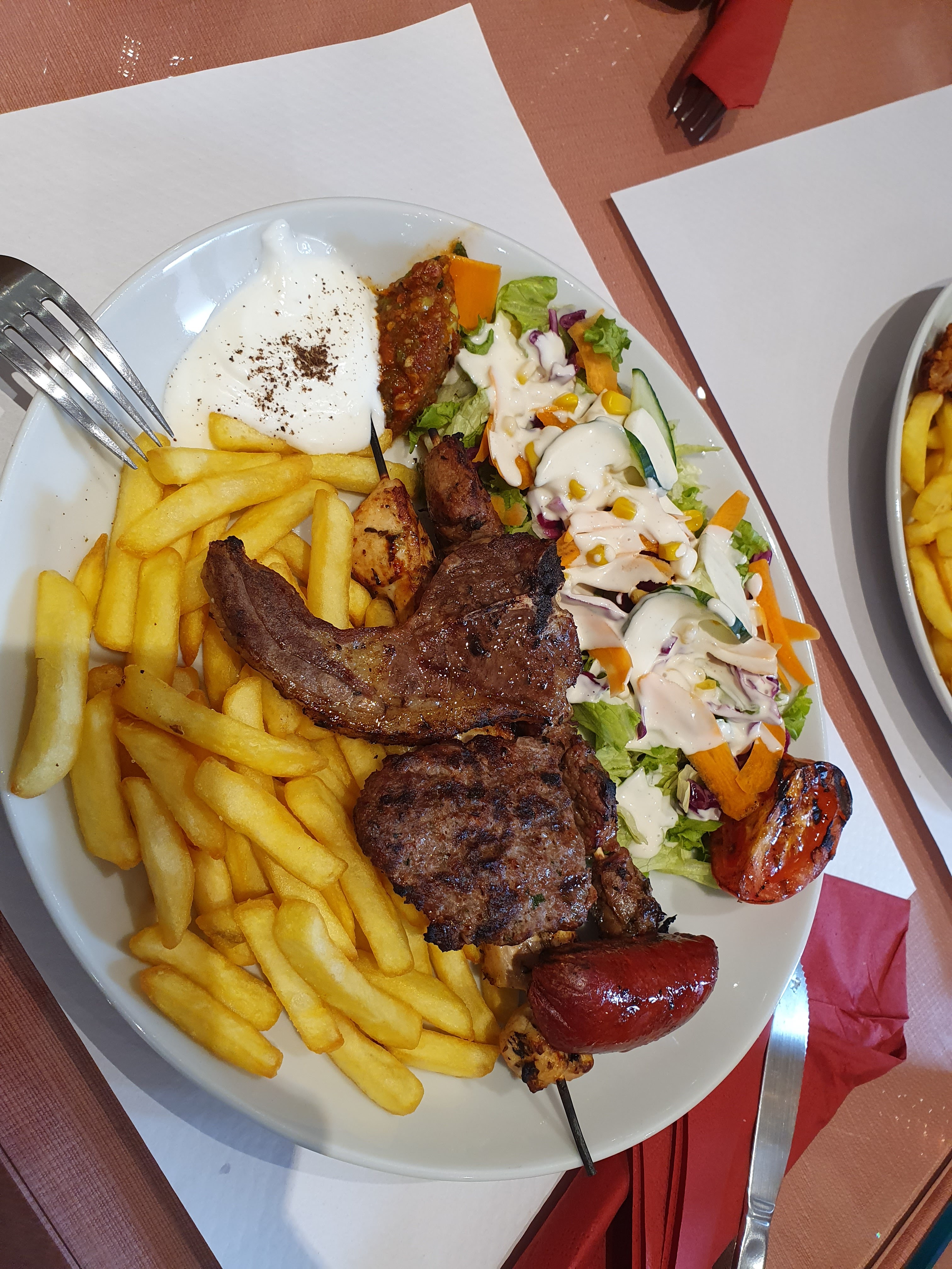 Un magnifique endroit avec une véritable cuisine faite maison, un vrai régal notre assiette avec des frites croustillantes, de la viande de doner de veau succulente et les crudités top ! Nous reviendrons avec grand plaisir 🔝😁