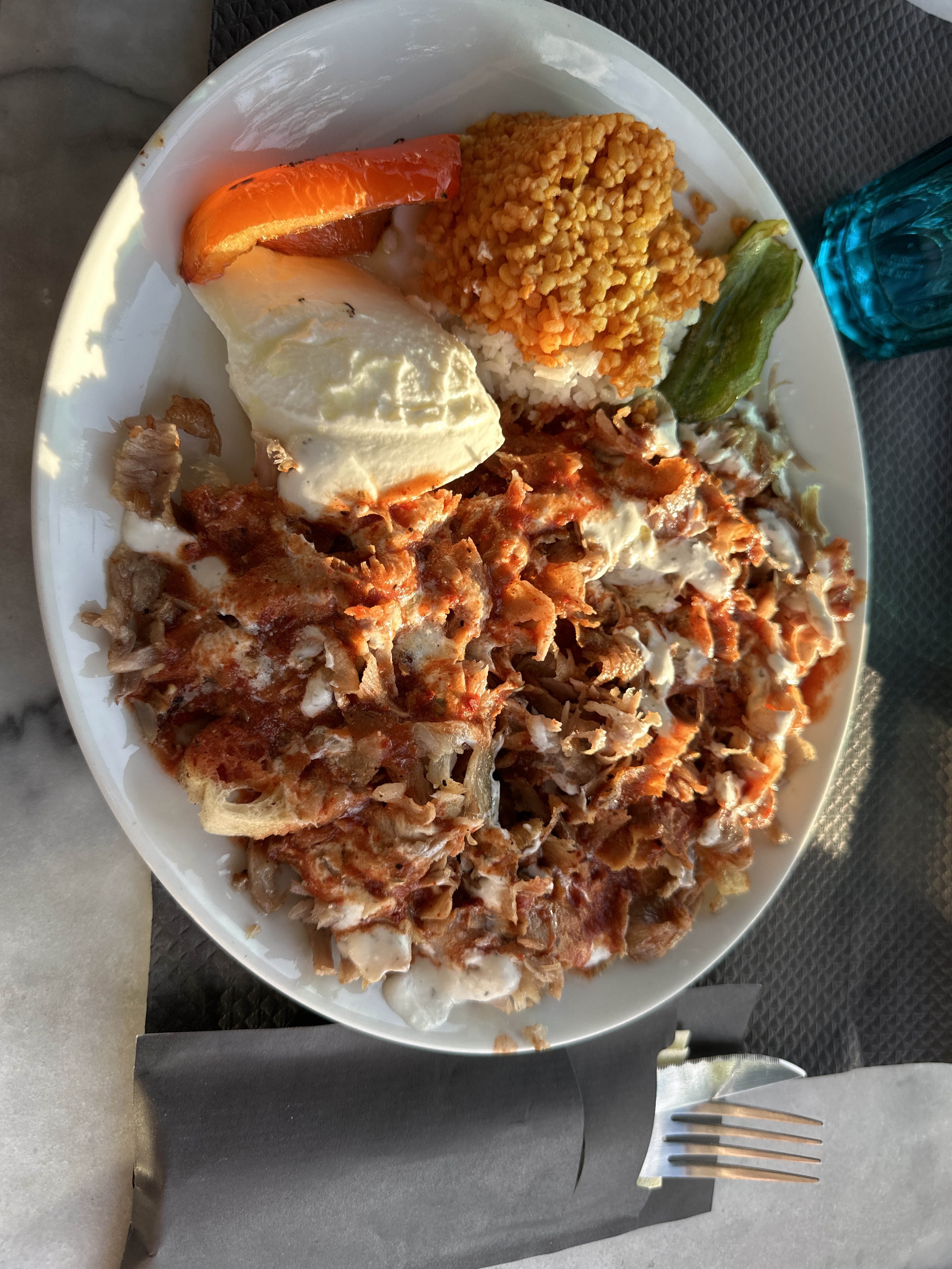 Nous avions la chance d'être peu nombreu dans la salle de restaurant, donc le lieu était calme. Pas de nauvaises surprises dans l' assiette, ou plus exactement une bonne surprise, bonne viande, bien présentée, et quantité raisonnable. Accueil sympathique . Nous avons eu le plaisir de déguster un vrai café Turc. Bonne appétit à tous