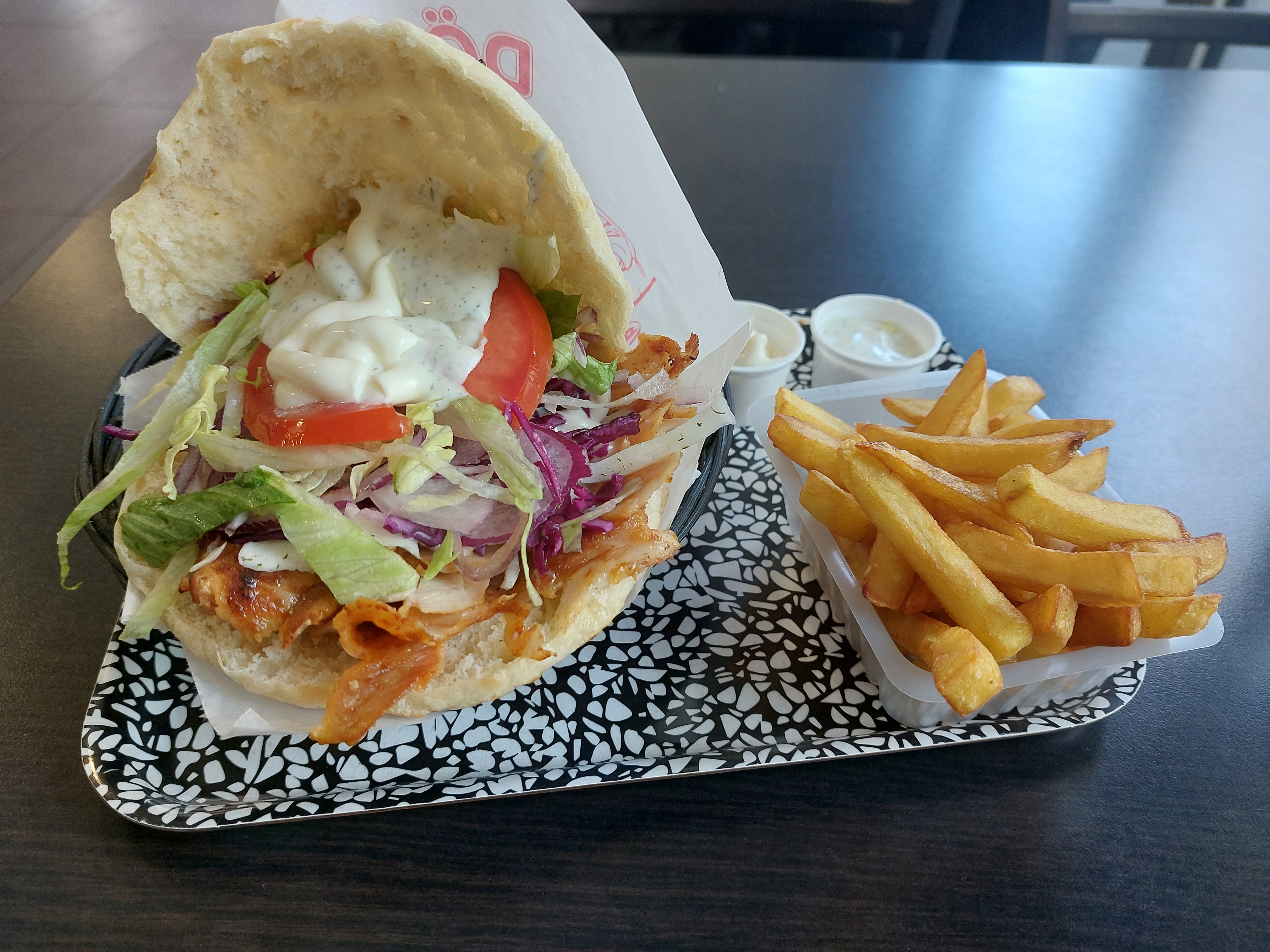 Kebab excellent , avec les compléments ! (Rare chez les concurrents) La quantité est généreuse, juste selon moi le point faible ce sont les frites, trop molles . Des frites croustillantes un peu plus épaisse ce serait le top! Pourquoi pas des frites maison! Je recommande ce restaurant, cela reste très bon!
