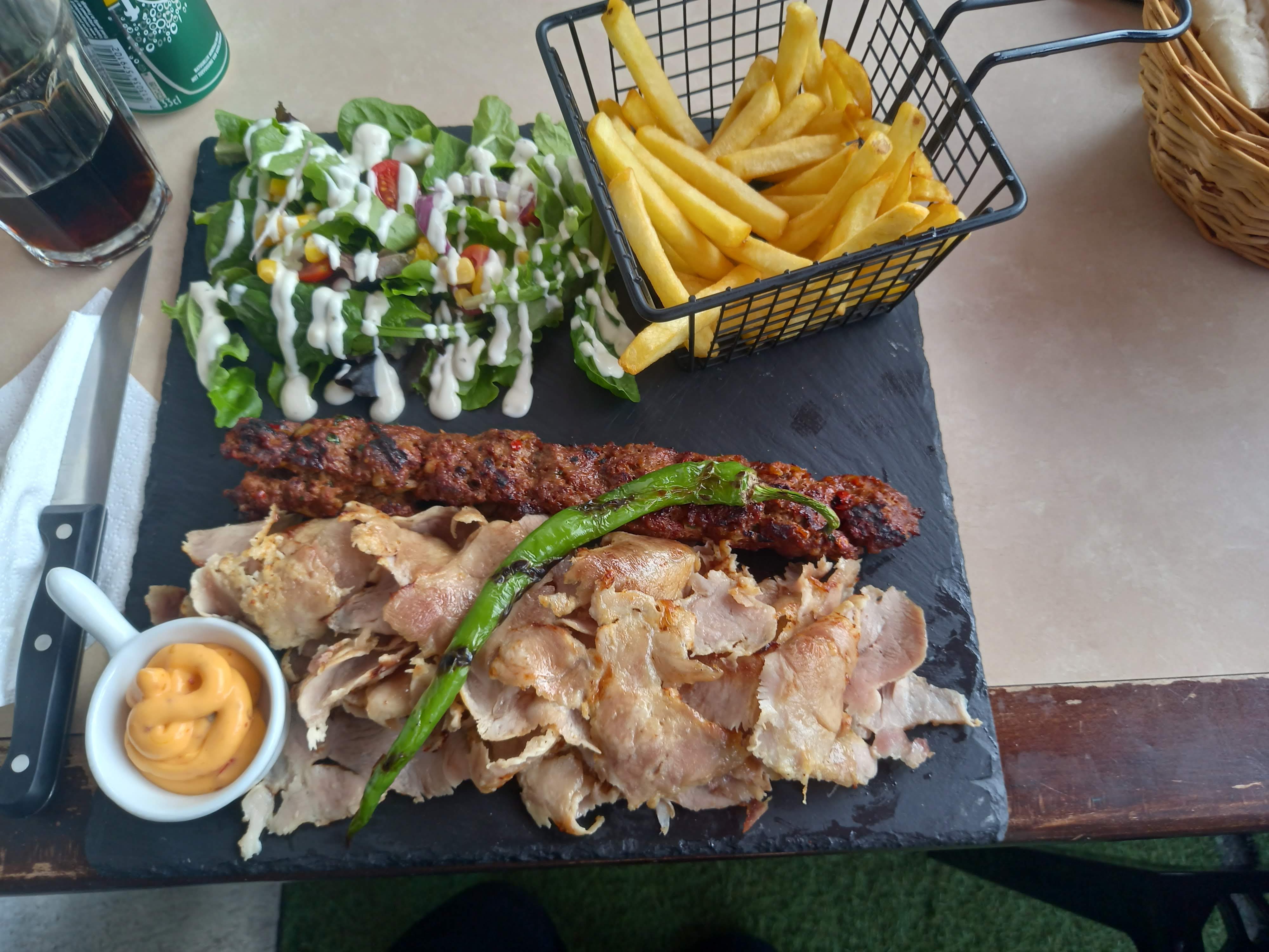 Viande congelée , cacik c est de l eau ... Frites pas cuites, honnêtement c est a fuire le niveau a bien baisser !
