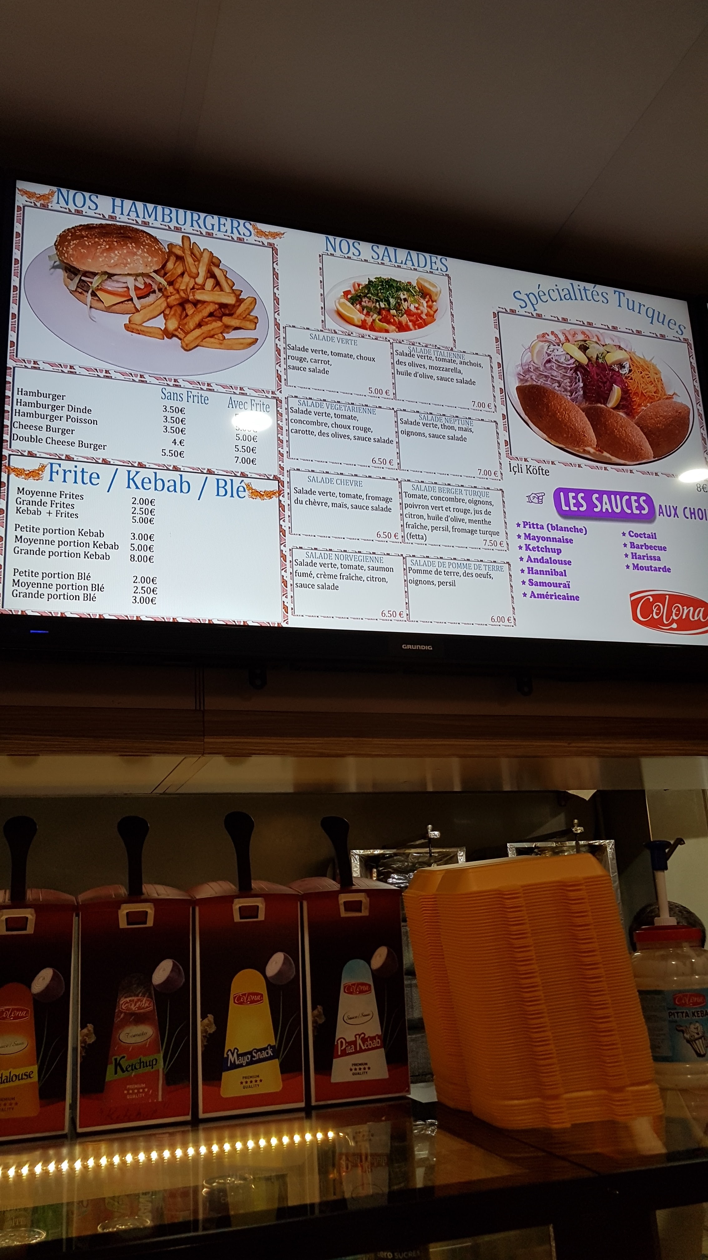 Hygiène irreprochable, fraîcheur, variété, poisson frais, viande agneau, boeuf, dinde, poulet, et biensur du kebab. Des salades avec des legumes frais. Le personnel est accueillant et bienveillant, c est un restaurant que je recommande, le meilleur de zone hautmont louvroil Maubeuge