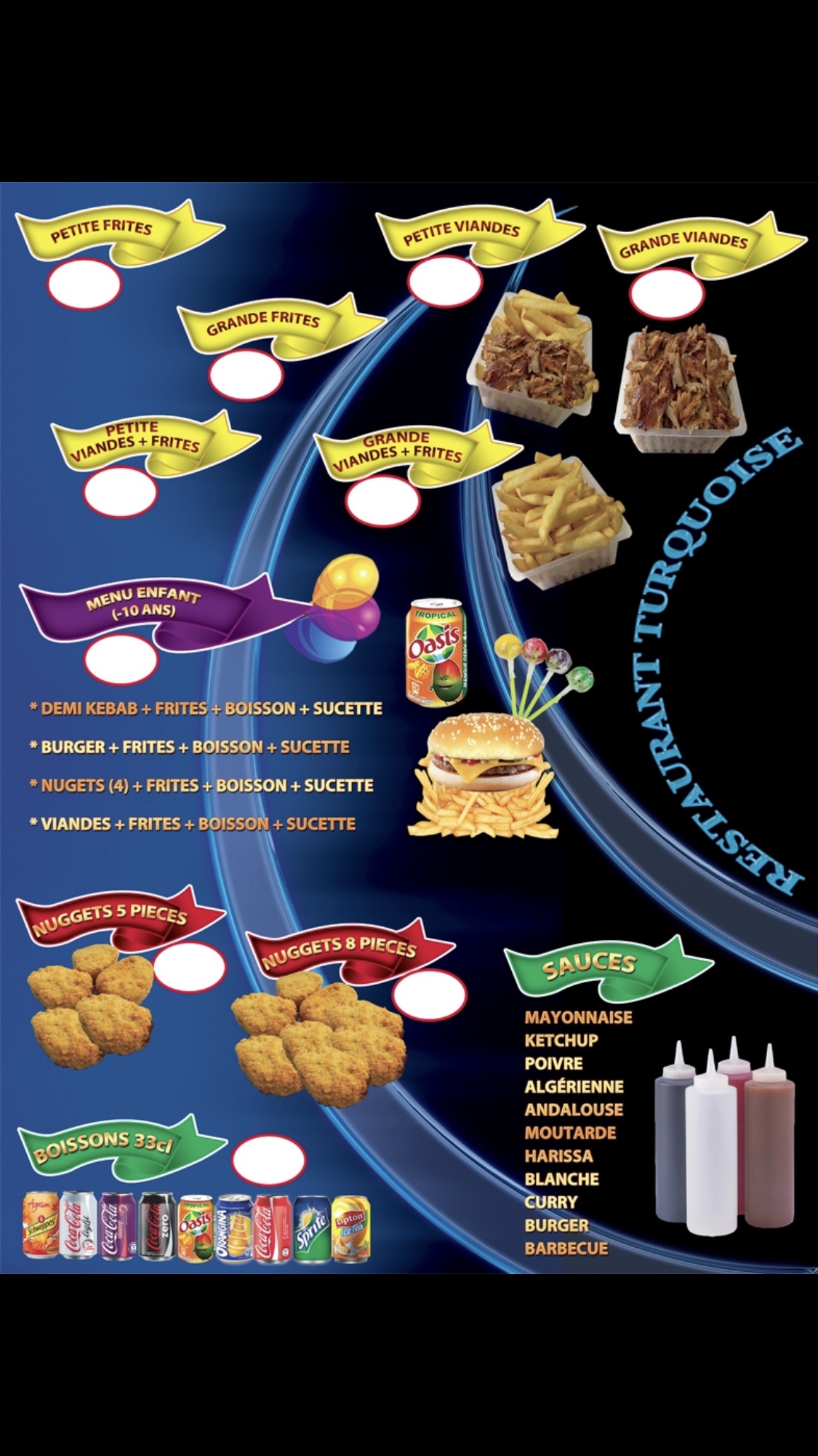 Notre groupe de 8 personnes a malheureusement choisi cet établissement il y a une semaine, et nous le regrettons amèrement. Points négatifs : - Frites abondantes mais de piètre qualité : molles et sèches à la fois - Kebab décevant : viande de mauvaise qualité, pain sec - Portions pas plus généreuses qu'ailleurs malgré les apparences - Prix élevé par rapport à la qualité servie - Attention : boisson non comprise dans le menu, malgré le tarif Le plus inquiétant : plusieurs d'entre nous ont souffert de maux d'estomac dans l'après-midi et les heures suivantes. C'est la première fois que je prends le temps de laisser un avis sur Google, mais je tenais à prévenir les futurs clients potentiels. Si vous cherchez un bon kebab, passez votre chemin. Votre portefeuille et votre estomac vous remercieront.