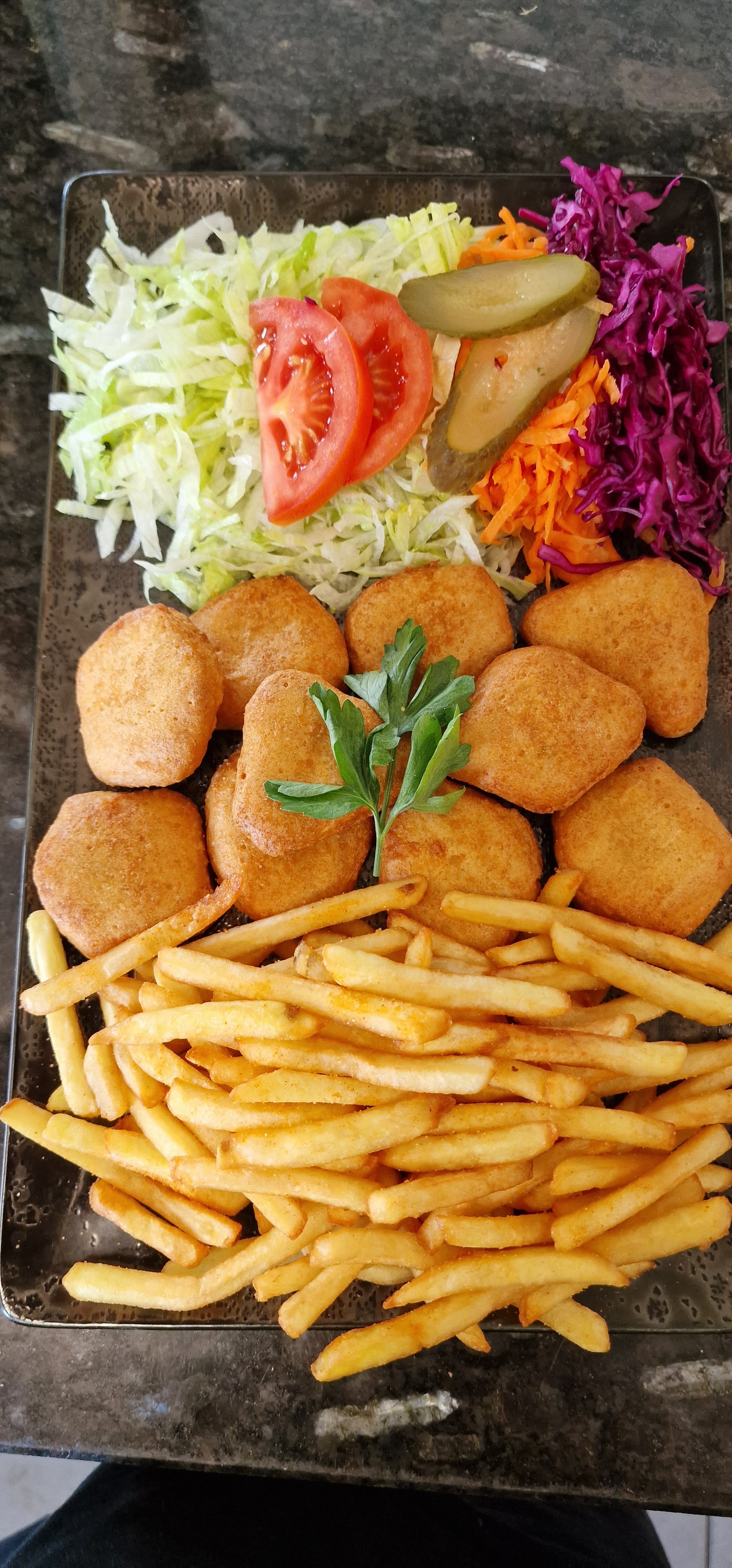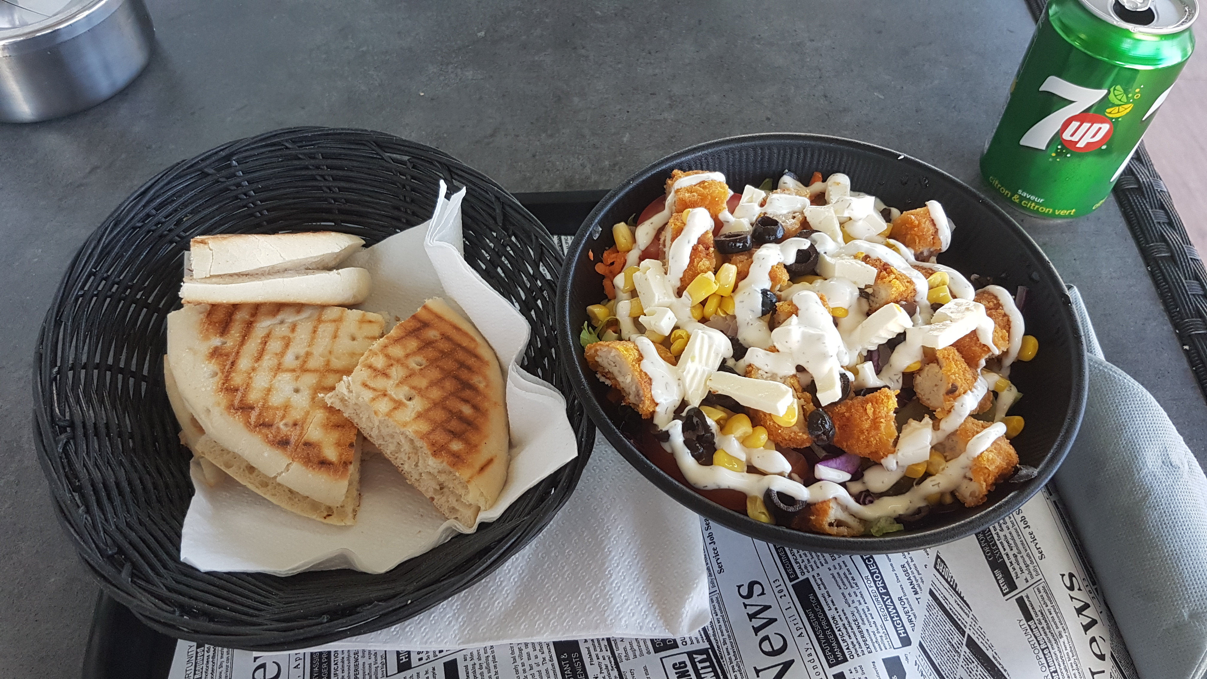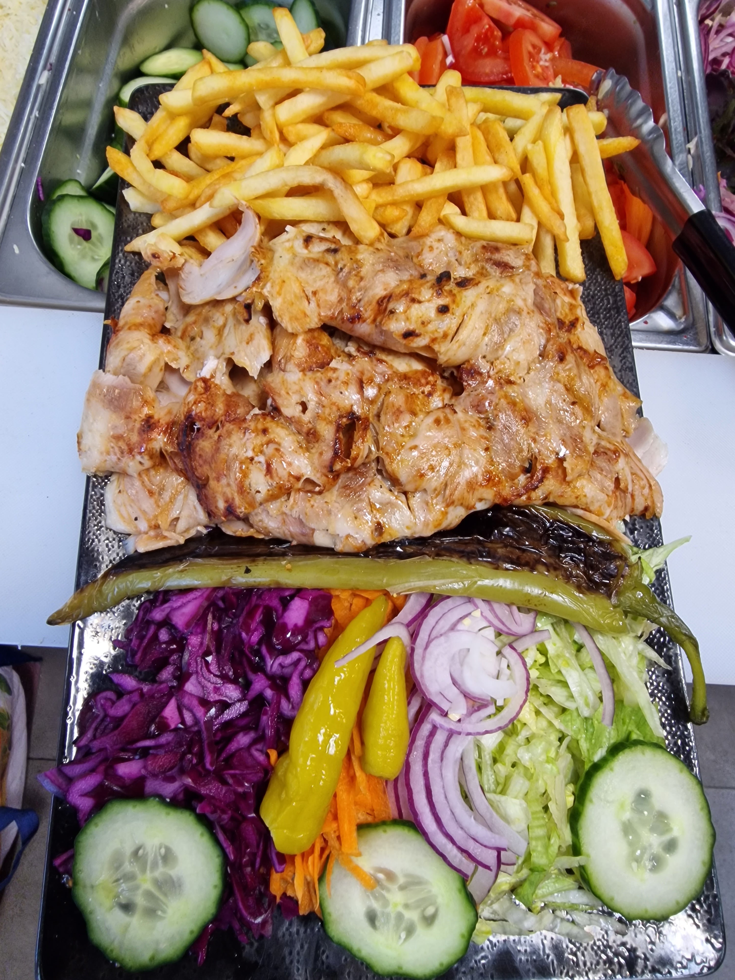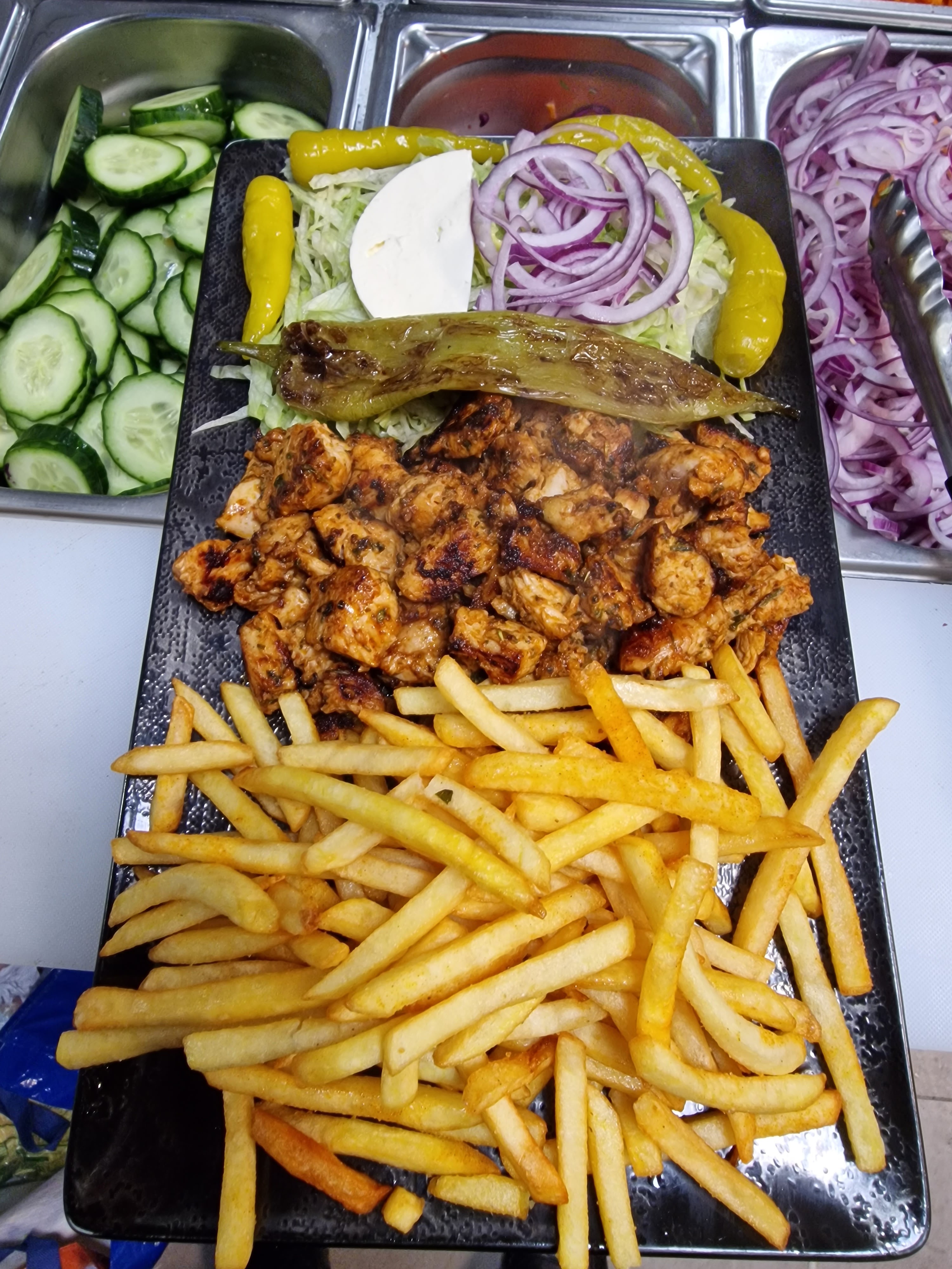 Nous sommes en train de manger une assiette kebab et une salade feta, franchement, on se régale. L'accueil est chaleureux, le service rapide et efficace, la nourriture fraîche et savoureuse. Pour un prix très correct. Une mention spéciale pour notre serveur! Bravo!!!