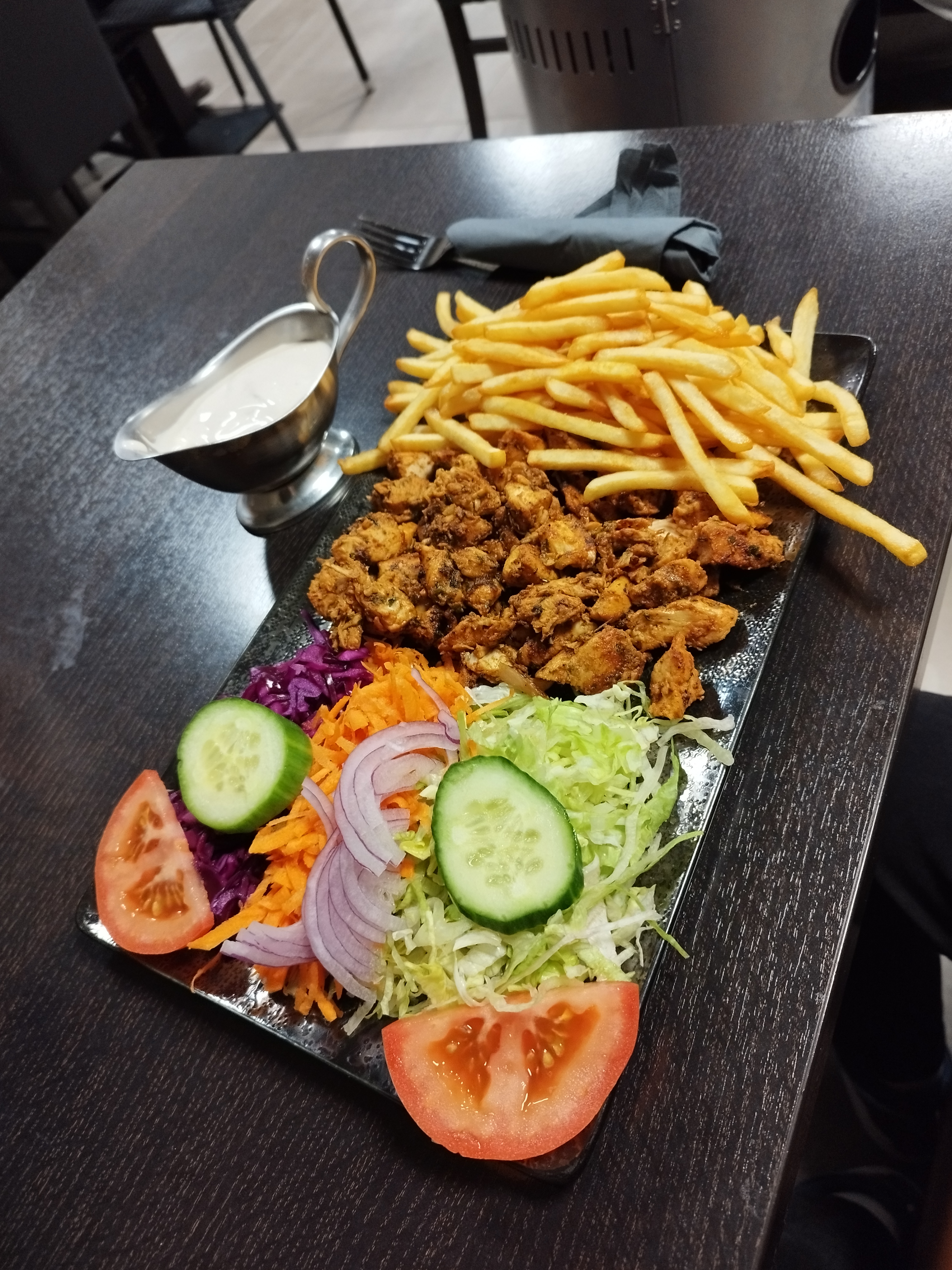 Sympathique, service rapide , kebab sur assiette impeccable.