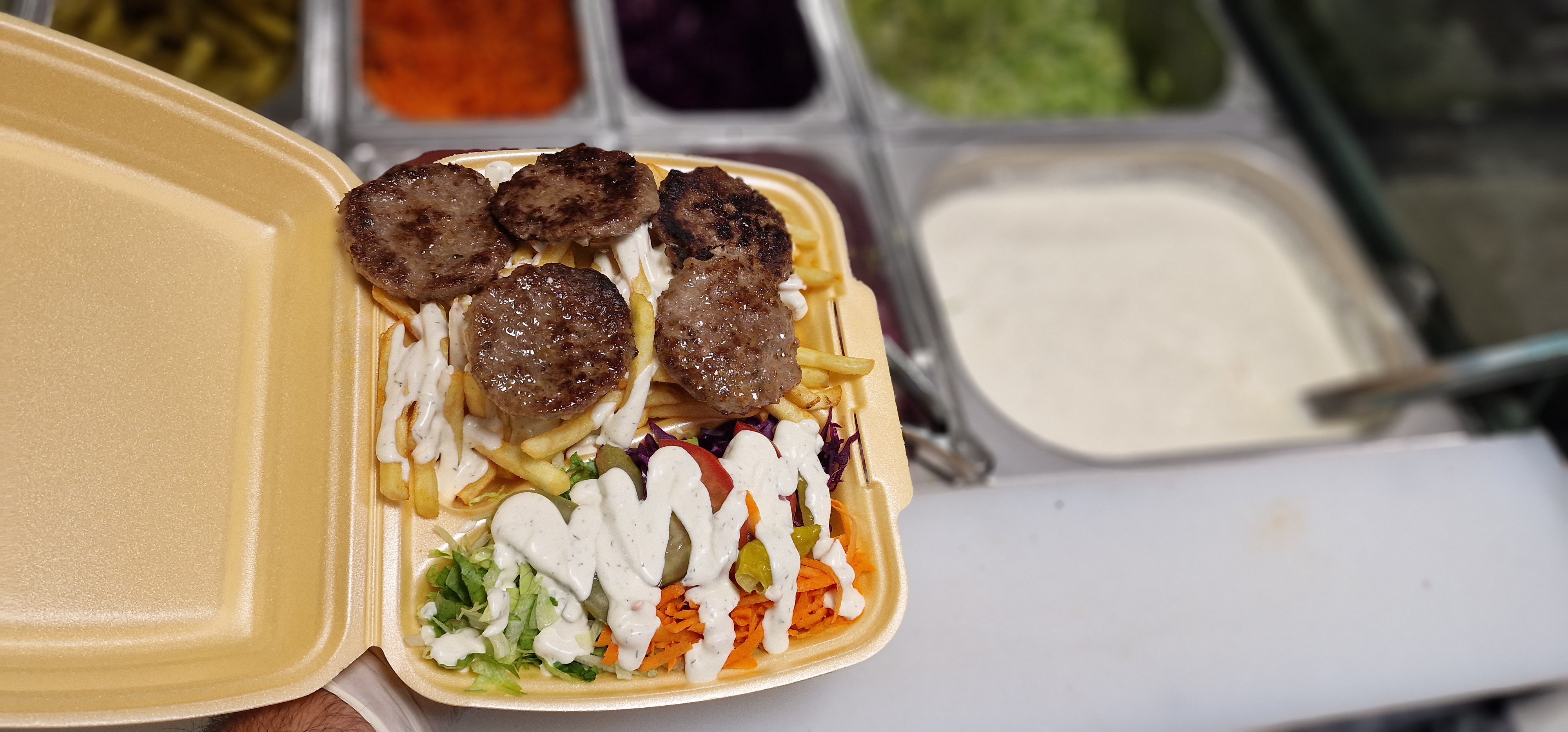 Bonjour, une petite photo pour vous dire que même 90 km ne me retiendront pas de commander chez vous ! IM-BAT-TABLES ! 👌 (Livraison assurée par la famille ou moi-même pour le retour, même dans une grande ville comme Nancy on en trouve pas à ce niveau, c'est vous dire ce qu'il est bon !) Je recommande chaudement les salades elles sont équilibrées, savoureuses et ça passe toujours hyper bien ! Ma suggestion personnelle : à quand le Berliner Kebap ? Sinon ne touchez jamais à quoi que ce soit, vous êtes au top et les meilleurs dans tout le secteur ! Jamais malade contrairement à certains endroits et hygiène remarquable ! Ingrédients de qualité et sans soucis de cuisson/stockage etc ...