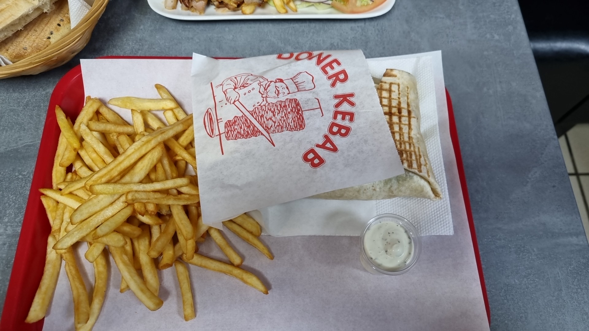 Bon accueil, kebab et frites très bien garnis, la viande est bonne et les frites légèrement trop salé à mon goût. Petite touche speciale pour le pot de sauce ajouter à la commande gracieusement, parfais pour saucer à ma convenance… Service rapide. Je recommande !