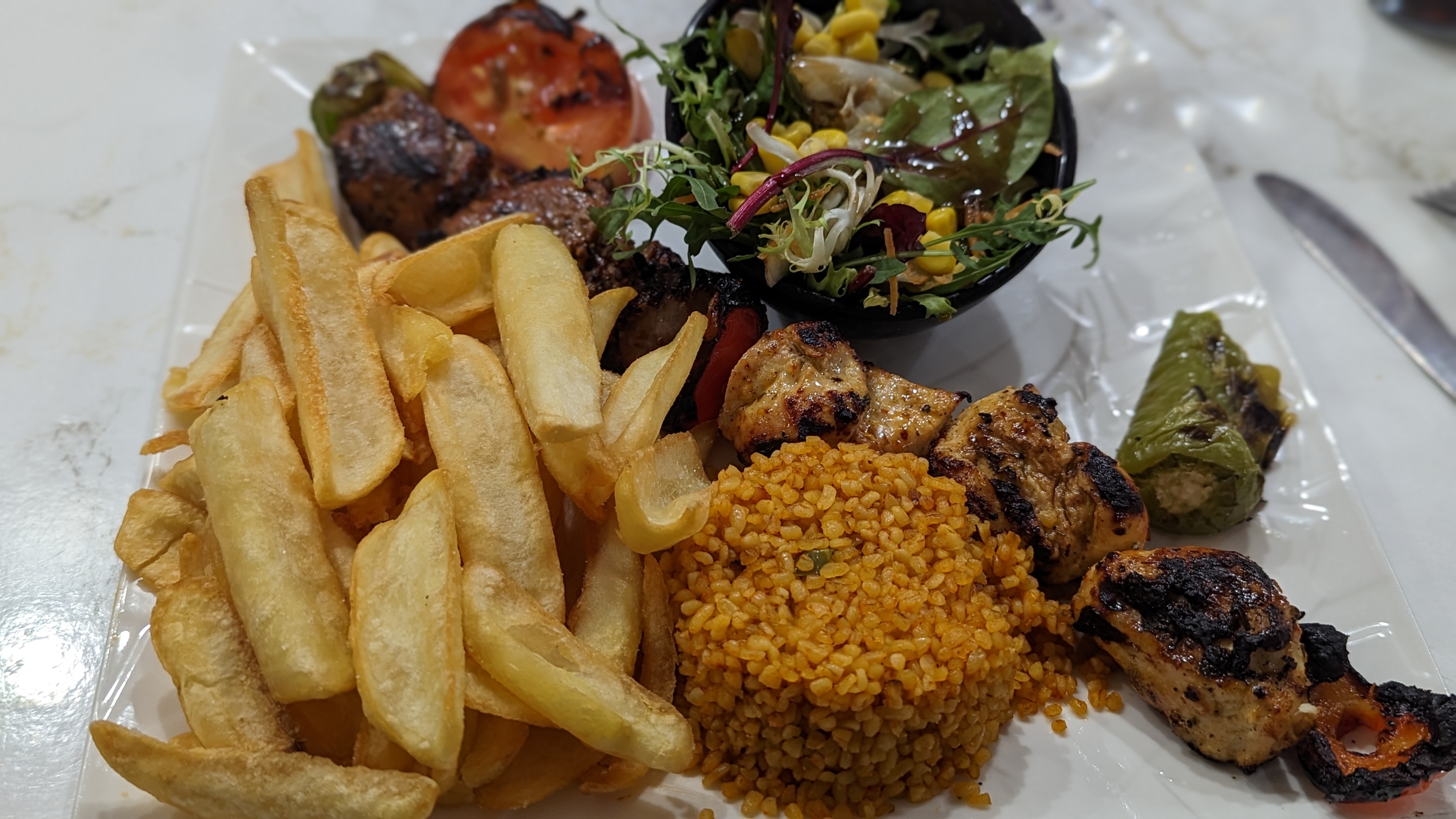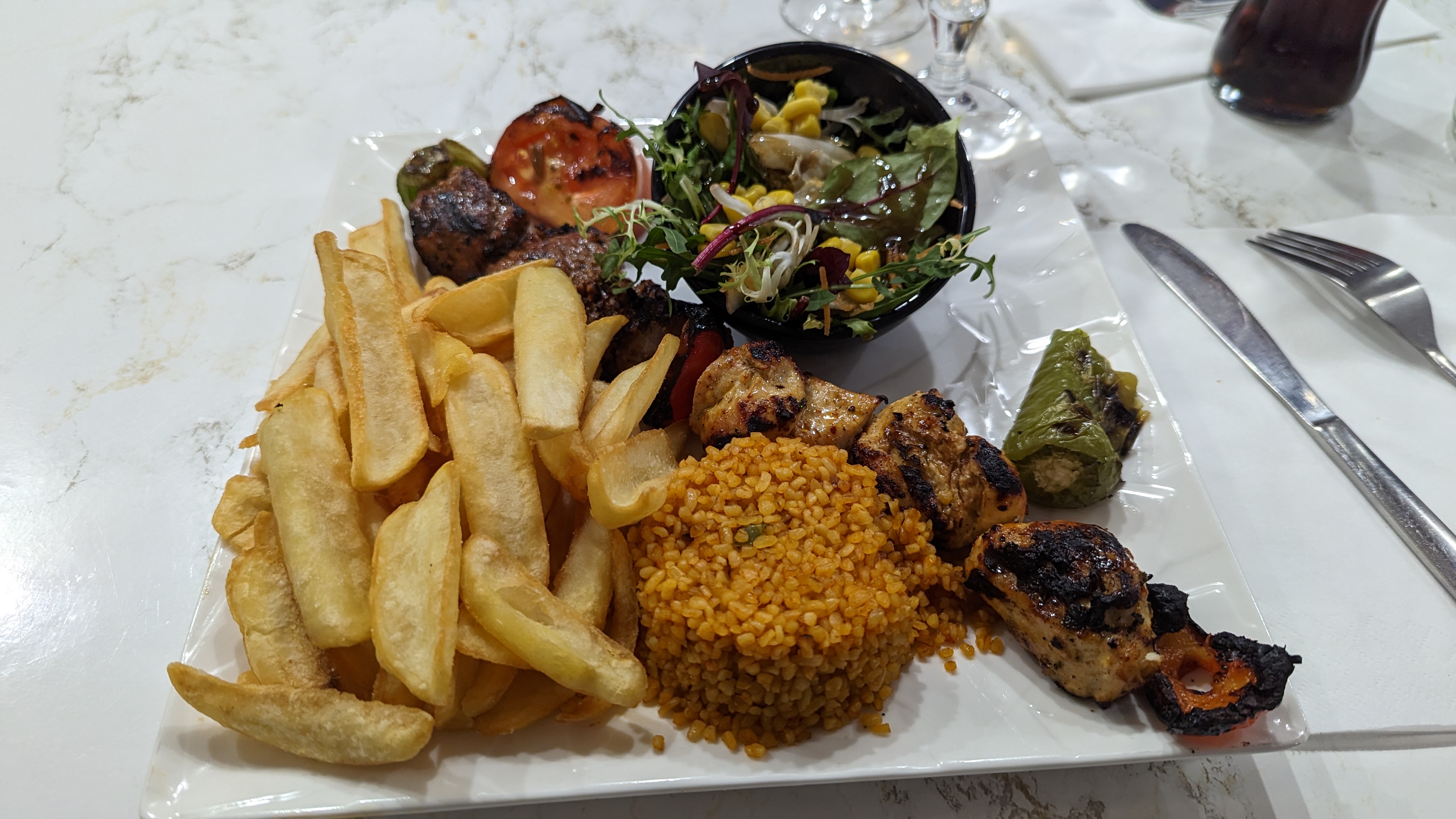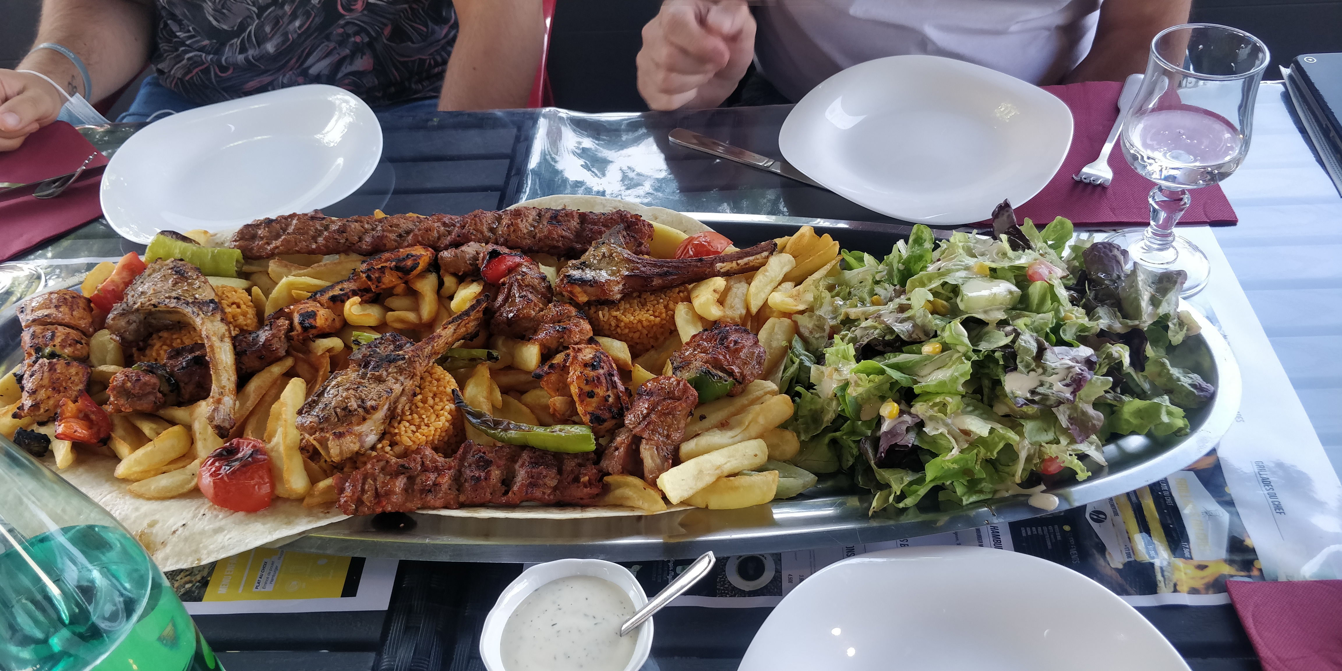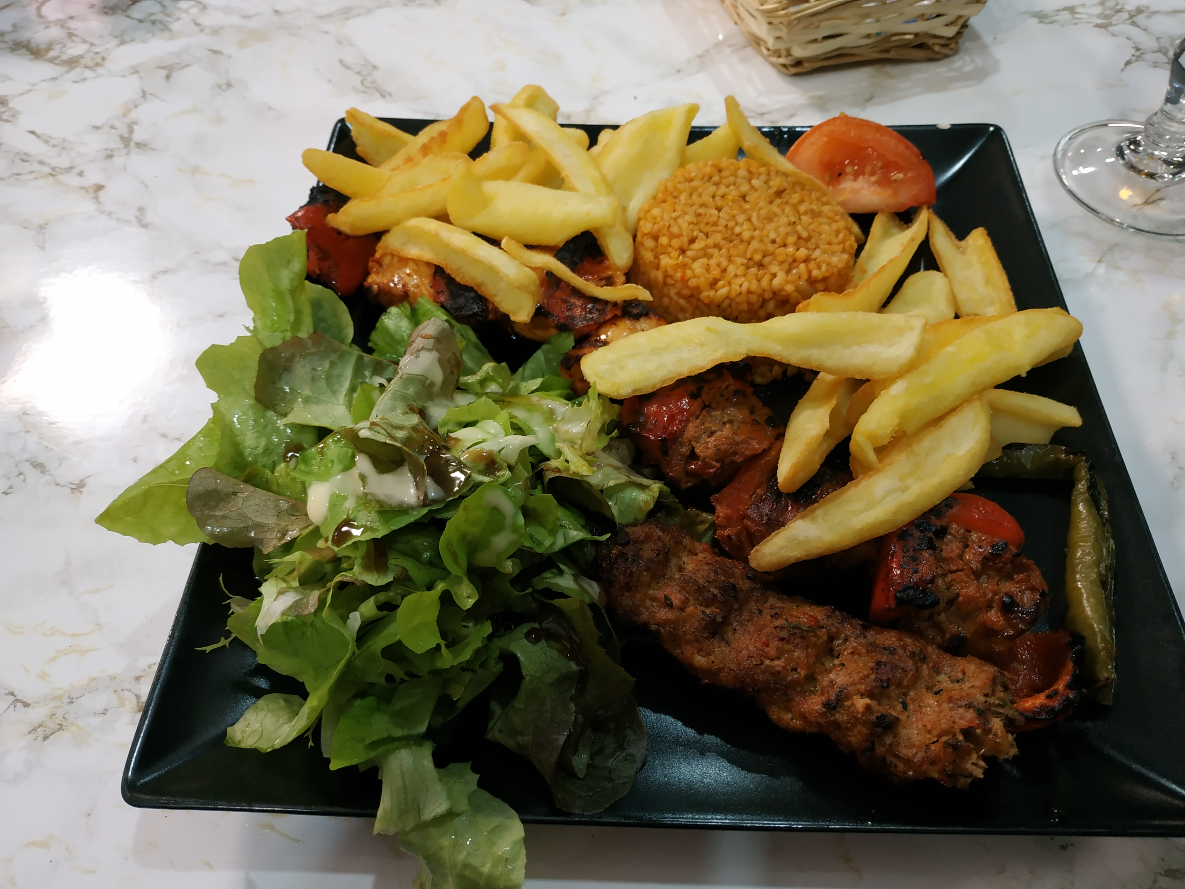 Agréable accueil, beau présentoir à viande! Idéal pour découvrir les plats traditionnels turcs ! Plats copieux !