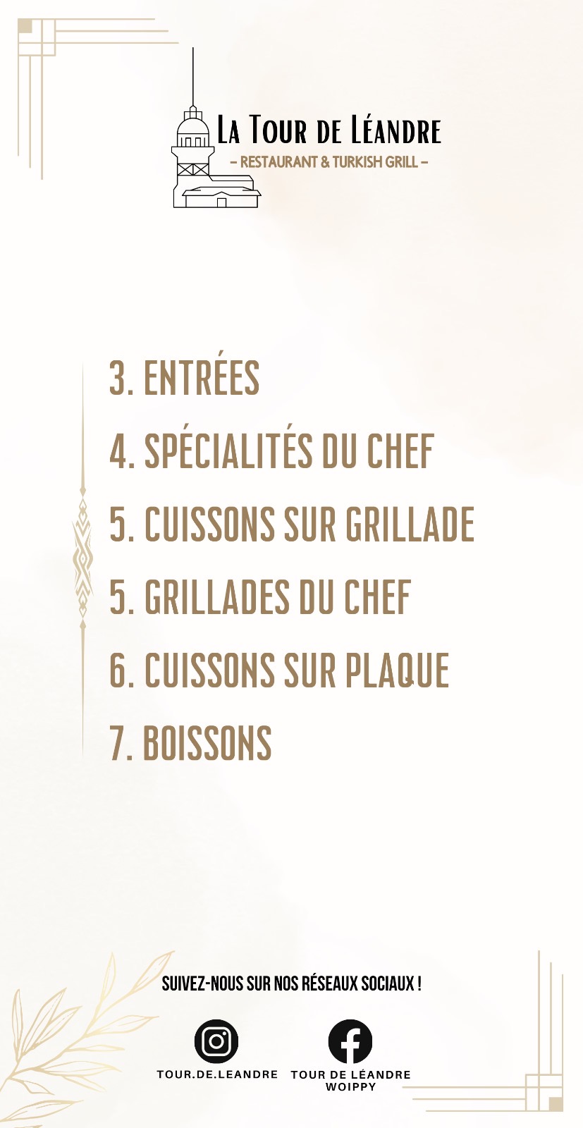 Tellement professionnel tellement délicieux ! Moi qui n’aime pas la viande d’agneau normalement, la Tour de Léandre ma fait changé d’avis. Les assiettes sont généreuses, les mézés sont très bon, les pidés délicieux, service bien chaud, personnel très sympa. Rien à reprocher ! Je recommande vivement 🤩🤩 Ps: gros gros coup de cœur pour l’escalope de poulet sauce champignons 😋 à tester !