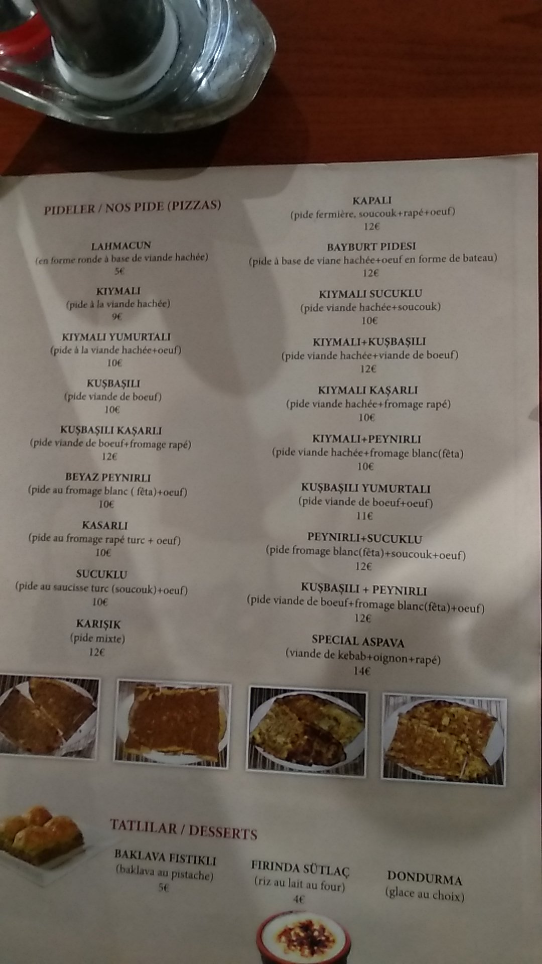 Excellant restaurant surtout pour les pides (pizza turque) qui sont parfaits et meilleurs quant Turquie. Le personnel est sympa et très efficace même quant il y a du beaucoup de monde.