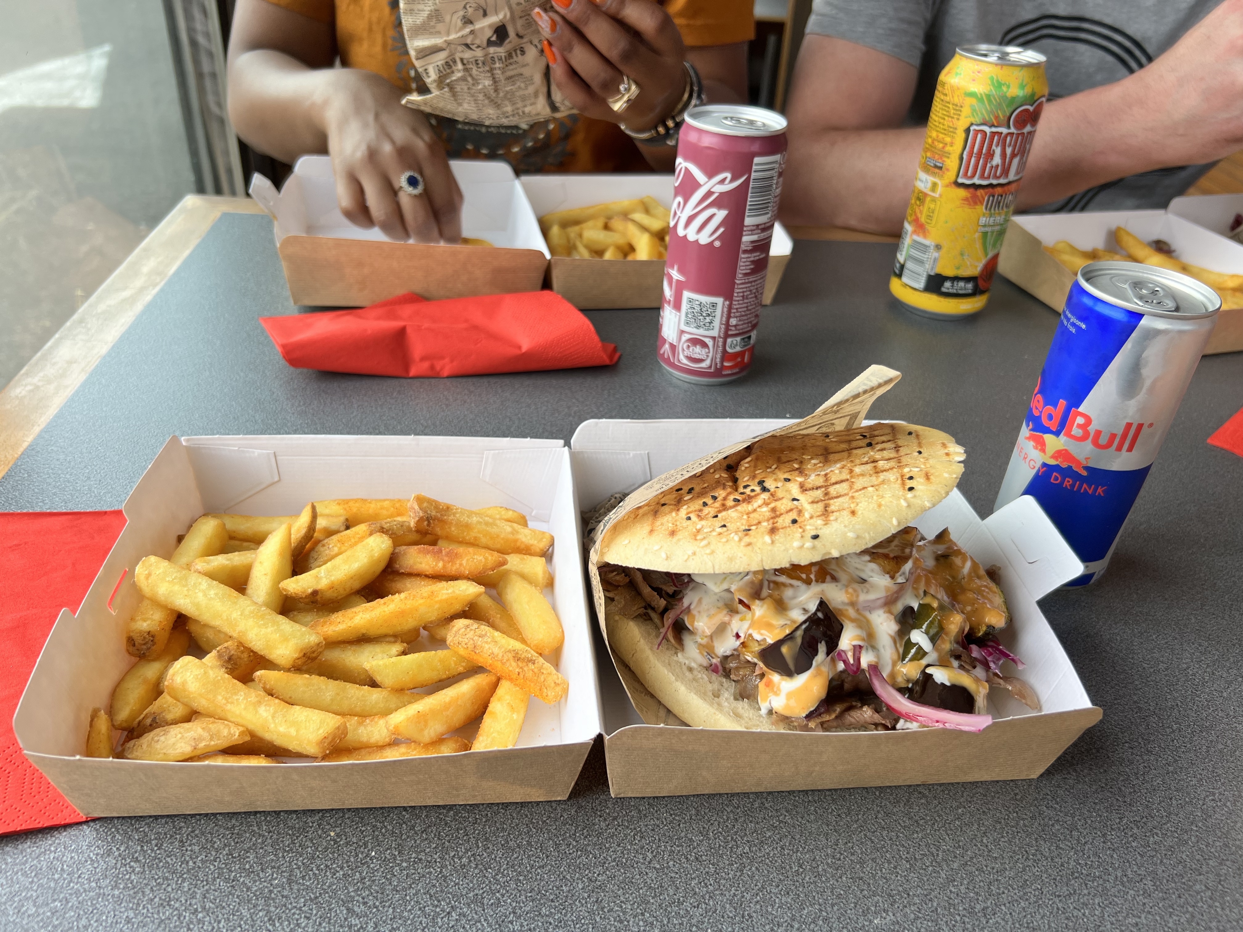 Je viens de commander un menu kebab. Les frites sont excellentes. Salées, croustillantes avec un pointe de paprika. Le kebab est bien garni en viande. Viande de qualité. Le pain est très bon également. Des serviettes épaisses qui essuient et absorbent contrairement à d'autres snack qui négligent ce détail pour gratter quelques euros en plus. Petit bémol, le prix. 12€ le menu.